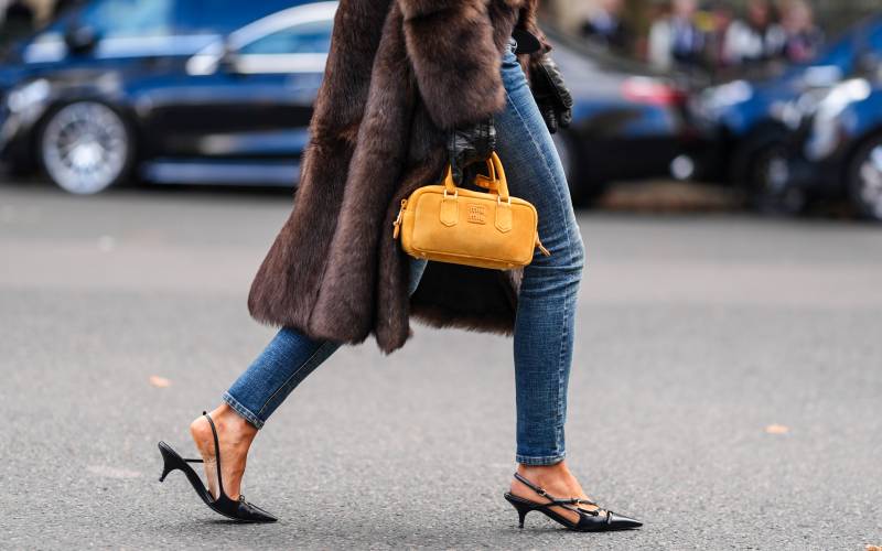」5. 브라운 퍼 코트와 청바지, 클래식하게 즐기기