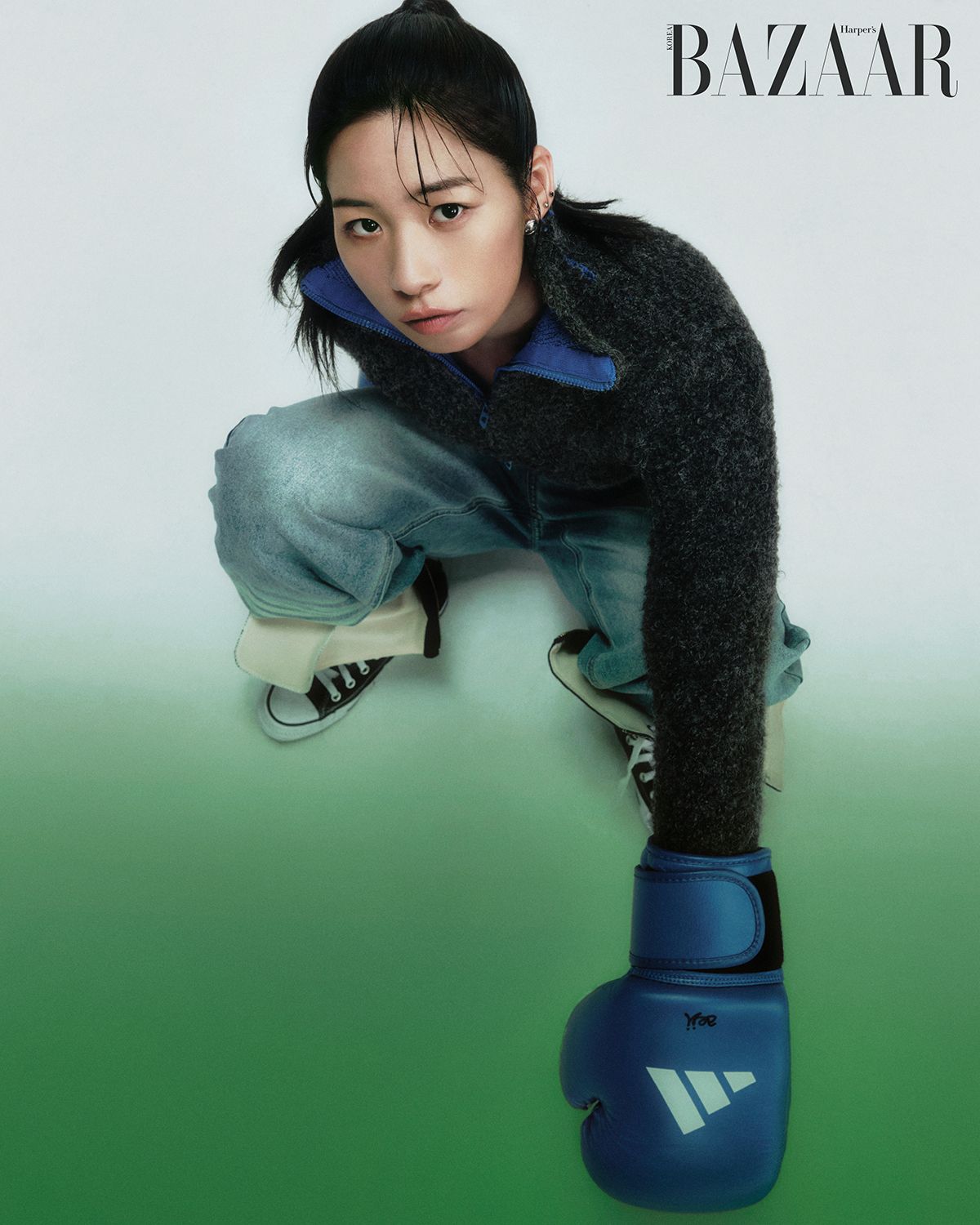 하퍼스 바자 오늘 촬영장에 들어설 때부터 미소가 끊이지 않을 만큼 잘 웃는 성향이던데. 헤드기어를 쓰고 링 위에만 서면 표정이 달라진다.