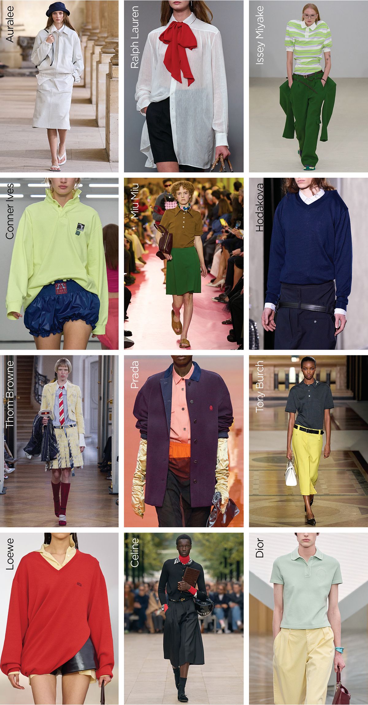 오랜 시간 변주되어온 프레피 스타일이 디자이너들의 상상력과 색다른 접근을 통해 또 한 번 진화했다. 1980년대 프레피 무드를 기반으로, 각자의 언어를 통해 다양한 프레피 코드를 제안한 것. 럭비셔츠와 아가일 니트 또는 폴로셔츠에 대담한 컬러와 패턴의 스카프를 매치한 우아하고 세련된 프레피 룩을 선보인 셀린느와 미우미우, 가죽 쇼츠에 대비되는 색상의 루스한 브이넥 스웨터와 폴로셔츠를 레이어드한 로에베 쇼가 인상적이다. 자수 로고를 넣은 과감한 컬러의 폴로 재킷과 윈드브레이커를 제안한 프라다의 스포티하고 모던한 프레피 스타일링도 주목할 것.