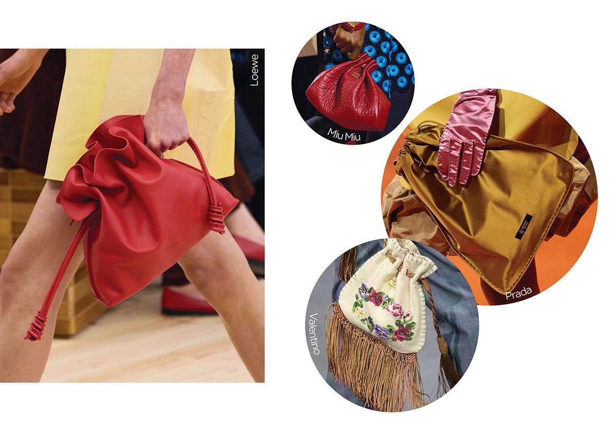 이브닝 룩에 꼭 어울리는 파우치 백이 트렌드의 최전선에 등장했다. 휴대폰부터 립스틱까지, 꼭 필요한 물건을 다 담을 수 있는 데다 가볍고 사랑스럽기까지 하다. 로에베와 미우미우의 부드러운 가죽 소재 파우치, 프라다와 발렌티노의 패브릭 소재 파우치가 그 주인공. 캐주얼한 룩보다 드레스에 매치하기 좋은 가방으로 주목받았다는 점도 눈여겨볼 포인트다.