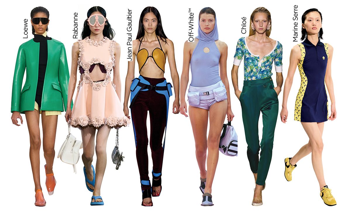 색다른 스포티 룩을 즐기고 싶다면 이국적인 패턴과 강렬한 컬러에 주목할 것. 이번 시즌 디자이너들은 서핑과 스쿠버, 해변과 리조트를 오가는 수상 스포츠와 아름다운 섬에서 발견할 법한 프린트, 선명한 컬러를 더해 에너제틱한 룩을 완성했다. 로에베의 새로운 크리에이티브 디렉터 잭 맥컬로와 라자로 에르난데스 듀오는 서핑 수트를 연상케 하는 매끄럽고 탄탄한 오렌지빛 가죽 재킷을 선보였고, 끌로에의 수장 셰미나 카말리는 1950~60년대 하우스의 아카이브를 재해석한 플로럴 패턴 톱과 피트되는 실루엣의 원색 팬츠로 우아하면서도 자유로운 스프링 룩을 선보였다. 파격적인 데뷔 쇼로 놀라움을 안긴 장 폴 고티에의 듀란 랜팅크는 비교적 얌전한(?) 수상 레저 모티프 룩을 선보이며 컬렉션에 생동감을 불어넣기도.