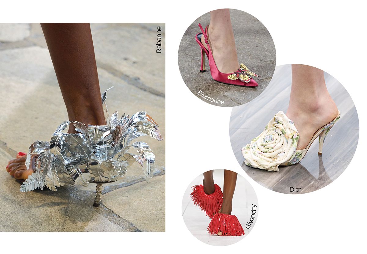 프린지와 아플리케, 주얼 장식 등 다채로운 디테일로 패션 판타지를 실현시킨 디자이너들! 이 환상적인 흐름이 발끝으로 이어졌다. 이번 시즌 등장한 슈즈들은 단순히 신는 행위에서 벗어나 꽃과 깃털, 프린지 등을 통해 오브제와 같은 자태로 재탄생했으니까. 컬러풀한 프린지 장식으로 바닥을 쓸고 다닐 법한 슈즈를 완성한 지방시, 모스키노부터 풍성한 꽃 장식을 더한 디올과 페라가모, 하우스의 아이코닉한 요소인 나비를 장식한 블루마린, 메탈 깃털을 더한 플립플롭으로 착용자의 뒷모습까지 배려한 라반까지. 올 봄과 여름, 단 한 곳에만 힘을 실어야 한다면 3D 장식이 더해진 슈즈로 발끝에 과감한 포인트를 더해보라.