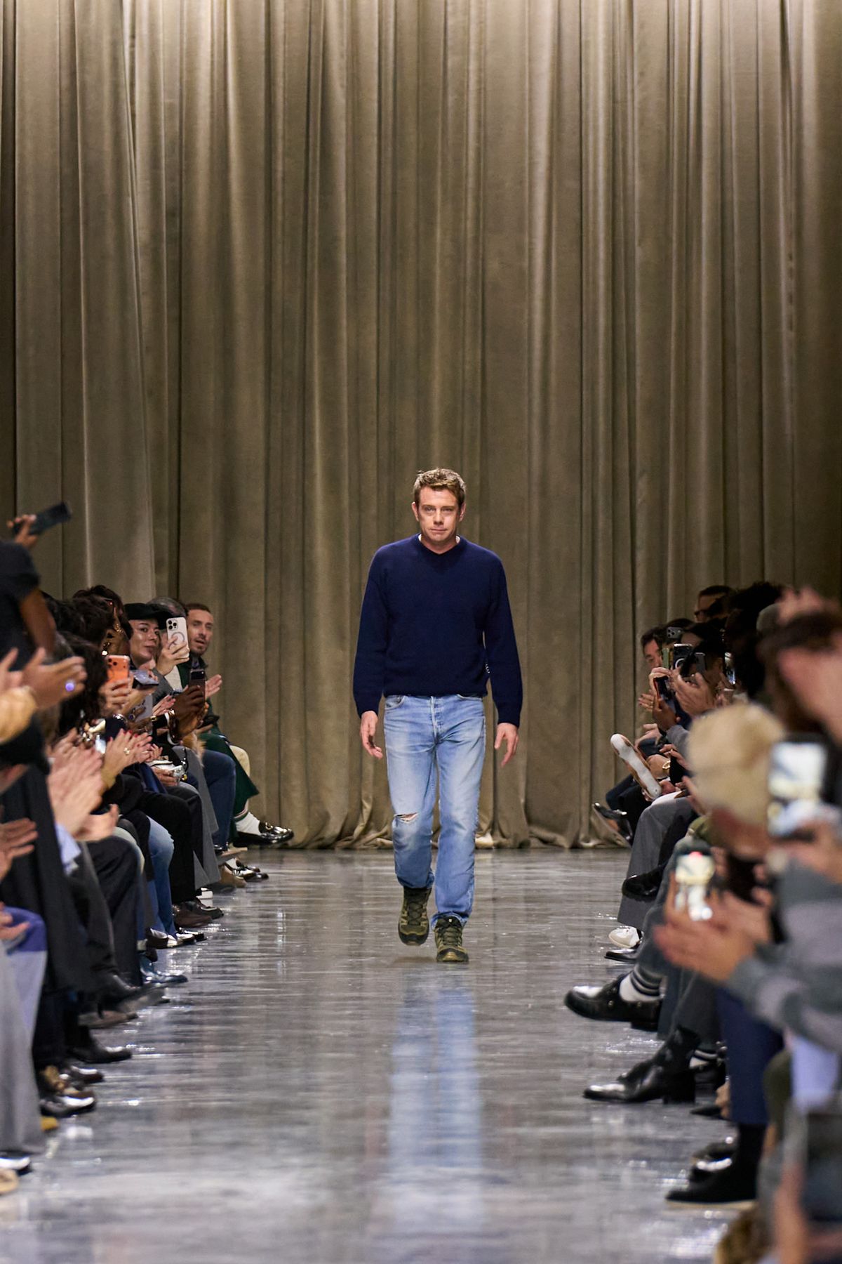 조나단 앤더슨은 폴 푸아레식 낭만과 데님·부츠 같은 동시대 요소를 충돌시키며 새로운 캐릭터를 구축했다. 초대장으로도 등장한 러프 칼라를 비틀어 펑키한 무드를 만들고, 과감하게 축소·변형한 테일러링으로 컬렉션의 방향을 분명히 했다.