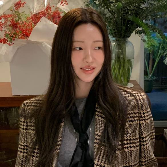사쿠라는 셔츠와 카디건 조합의 정석을 보여준다. 화이트 셔츠 위 브이넥 카디건으로 단정한 클래식 무드를 완성하고, 플레어 스커트와 롱부츠로 프레피한 분위기를 더했다. 깔끔한 실루엣과 안정적인 컬러 조합이 특징. 과하지 않지만 완성도 높은 레이어드로 하객 룩이나 포멀한 자리를 위한 스타일링에도 참고하기 좋다.