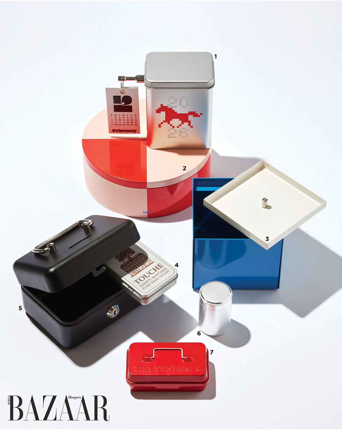 2 원두나 수분 기 없는 식재료를 보관하기 좋은 레드·핑크 배색 틴 케이스는 2만6천원 Hay by Rooming.