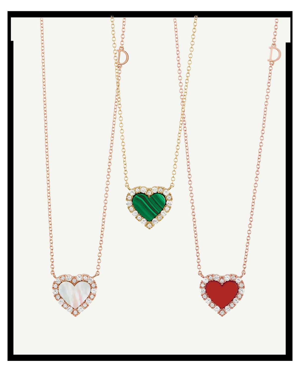 각각 카닐리언, 말라카이트, 머더오브펄을 중심으로 다이아몬드를 세팅한 ‘벨 에포크’ 네크리스는 모두 Damiani.