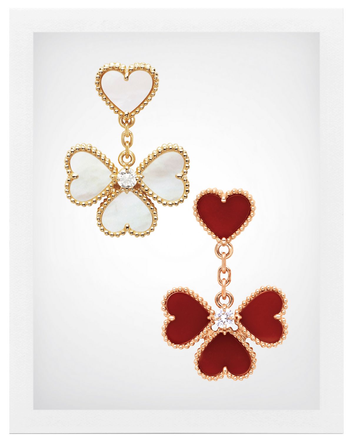 하트 모티프 4개가 모여 네잎클로버를 연상케 하는 드롭 디자인의 ‘스위트 하트’ 이어링은 Van Cleef & Arpels.