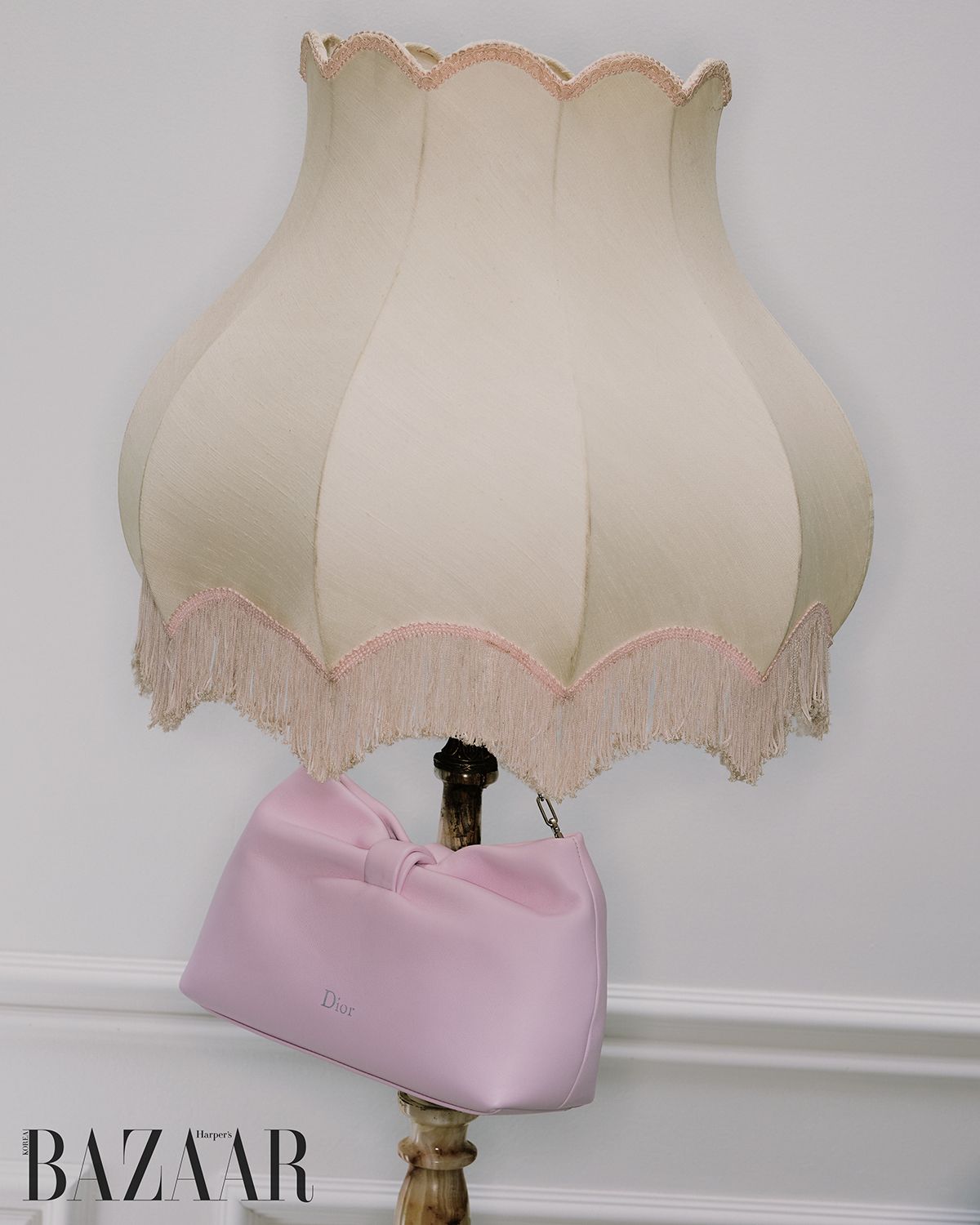 부드러운 램스킨 소재의 ‘로즈 송쥬’ 컬러 ‘디올 보우’ 백은 Dior.