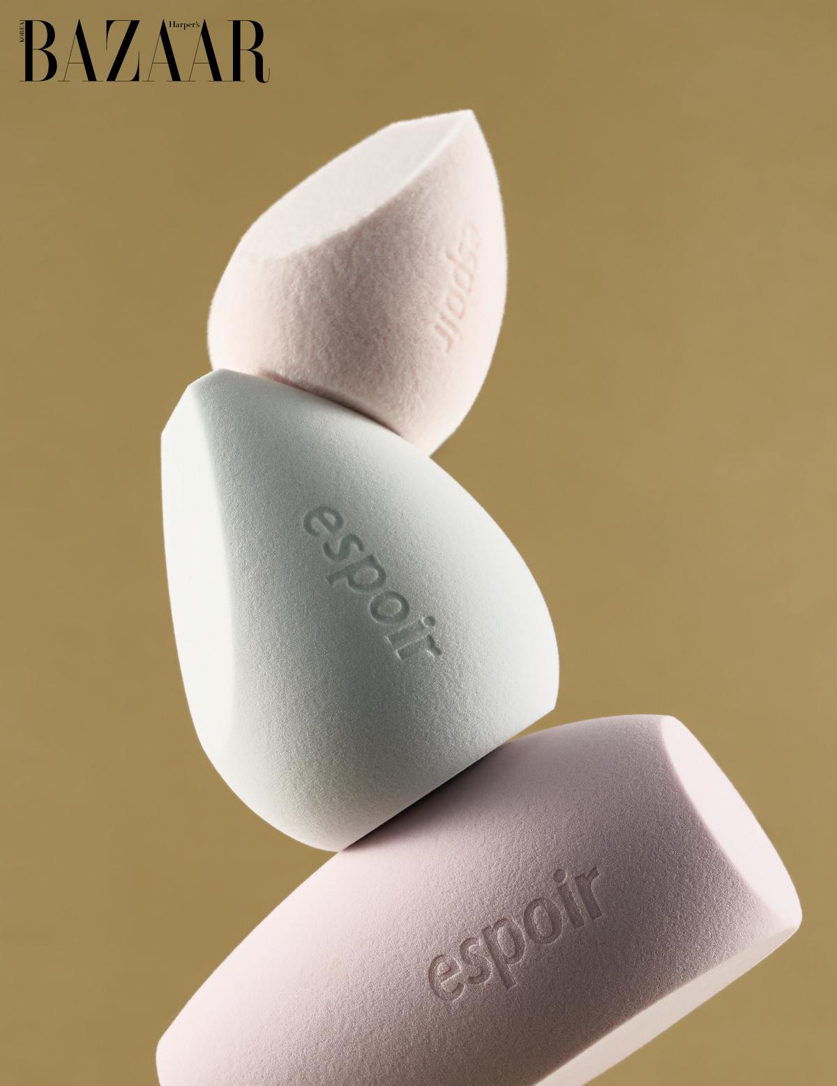 뷰티 툴은 퍼프만 사용한다. 세 가지 모양의 퍼프로 구성된 에스쁘아 원테이크 블렌더도 출시되자마자 사용해 봤다. 퍼프 밀도가 촘촘한 메가 사이즈는 제품을 덜 흡수해 커버력을 한층 높여준다. 가장 부드러운 스탠다드는 블러셔를 덜어서 얹어주면 맑고 화사하게 표현된다. 메이크업 마지막 단계에서는 표면에 짧은 섬유를 입힌 플로킹 재질의 미니 퍼프로 파우더를 사용해 유분을 정돈한다. 세 가지 퍼프만 있으면 어떤 제품을 써도 만족스러운 메이크업을 완성할 수 있다.