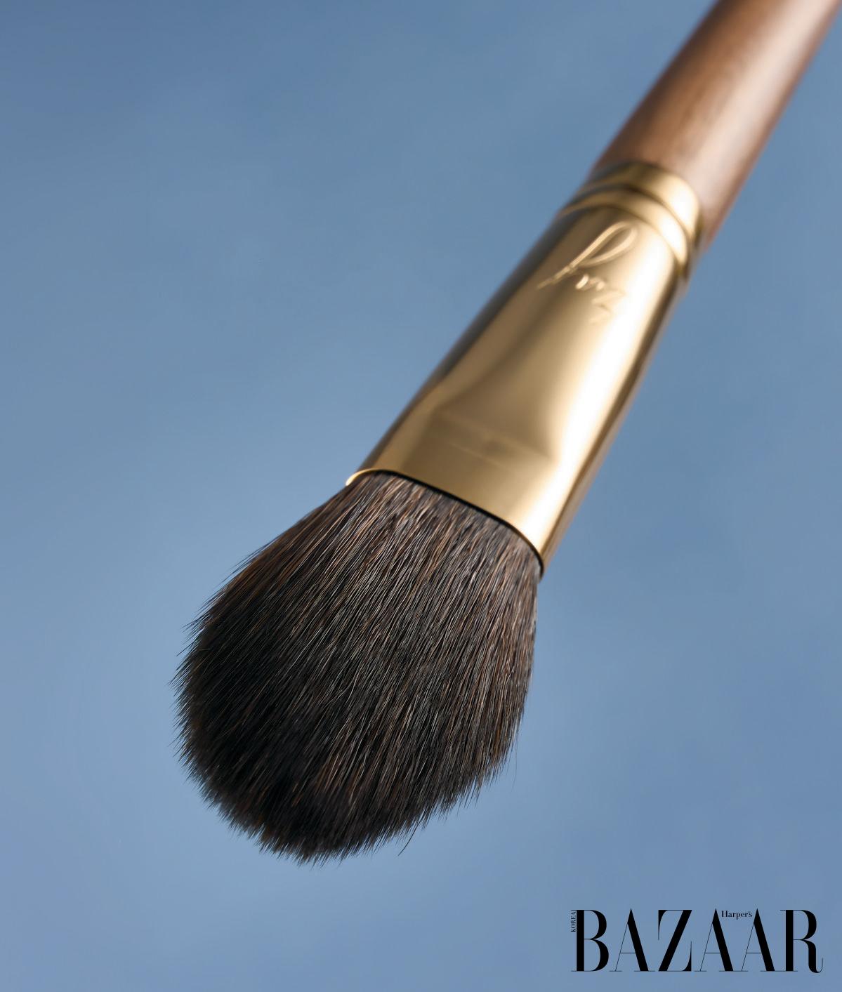 아무리 바빠도 블러셔만큼은 절대 사수한다. 민낯에서도 발색 차이가 없어야 하고, 눈 밑과 광대뼈 위를 중심으로 넓지 않게 얹는 걸 선호한다. 수많은 브러시를 써본 끝에 정착한 것이 수아도르 볼터치 브러시. 모가 중앙으로 갈수록 길고 촘촘하게 모여 원하는 부위에 정확하고 섬세하게 표현되며, 경계 없이 자연스럽게 블렌딩된다. 모의 텐션도 중간 정도라 초보자도 발색을 조절하기 쉽다.