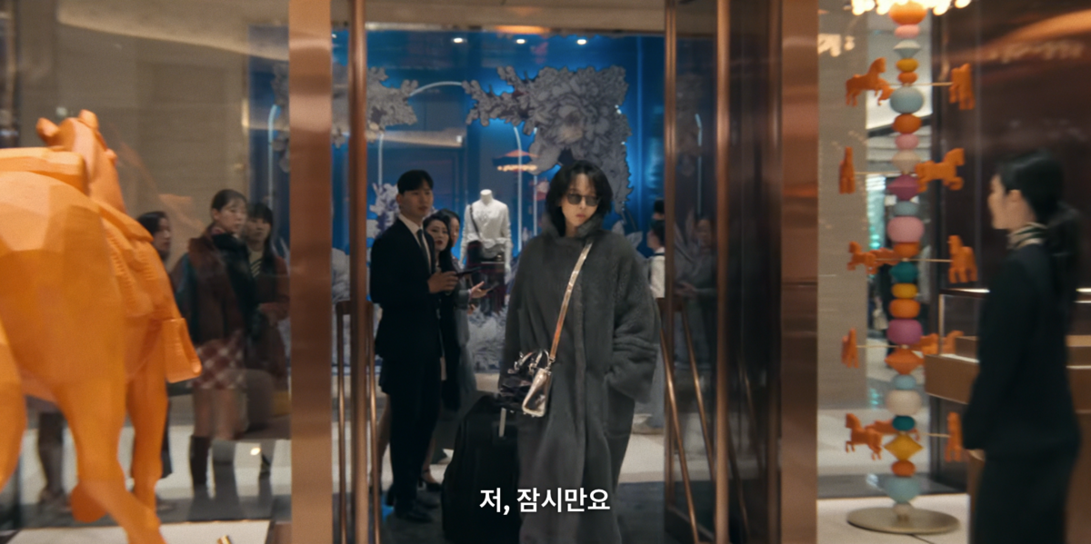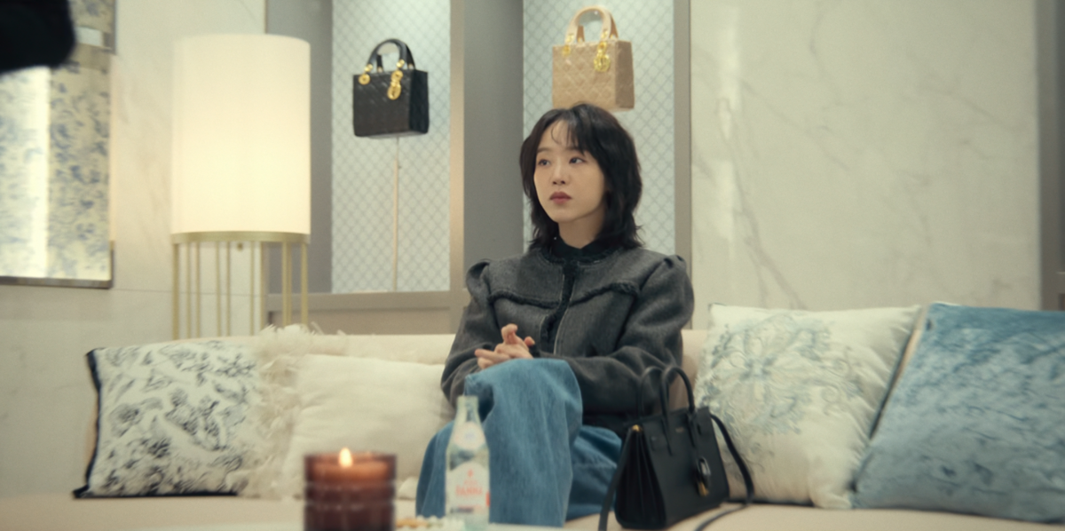 앞선 장면과는 다른 태도를 보이는 목가희. 그는 1화에서 강렬한 인상을 남겼던 디올 레이디 아트 #2를 구입하기 위해 디파짓을 내민다. 소심함 대신 당당함을 택한 순간, 그의 표정과 분위기 역시 달라진다. 이 장면에서 착용한 재킷은 이자벨 마랑의 델피나 재킷. 차분한 그레이 컬러에 퍼프 디테일이 더해져 페미닌한 실루엣을 완성한다. 치열함을 드러냈던 이전 룩과 달리, 한층 정돈된 무드를 선보였다.