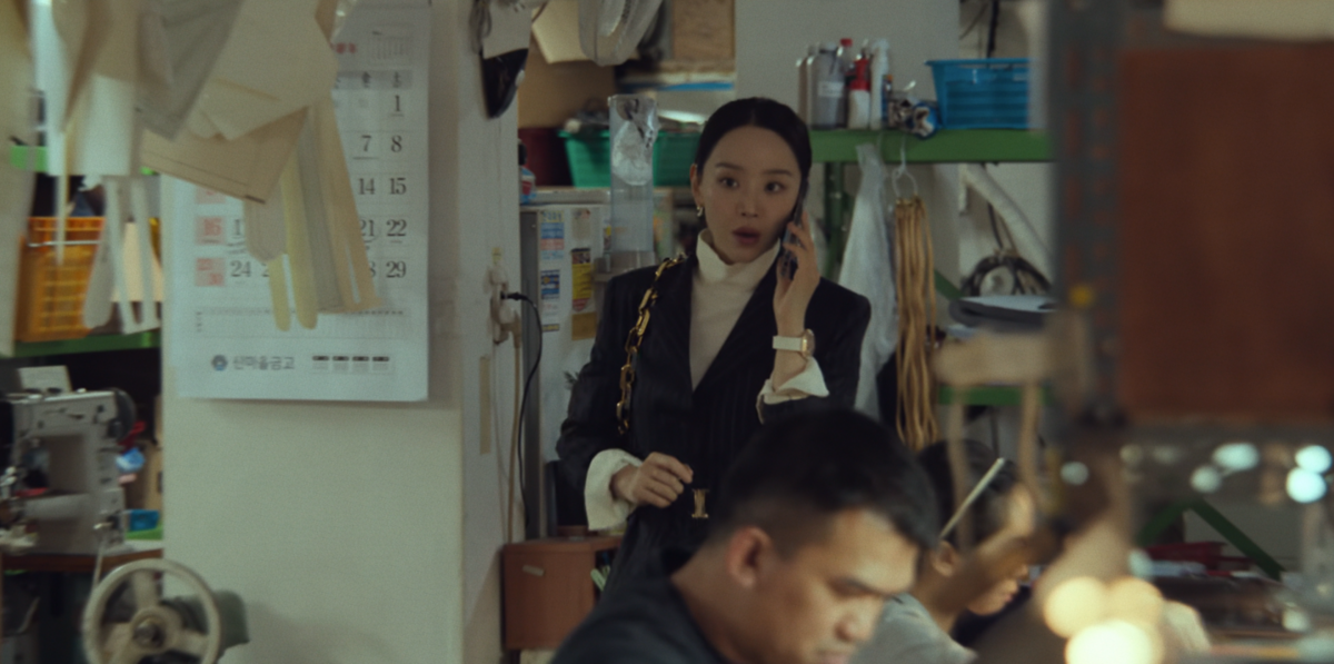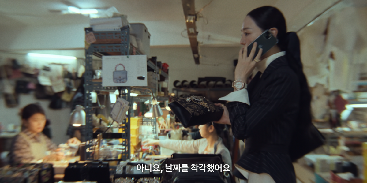점점 더 확고해지는 사라 킴의 존재감. 이 장면에서 신혜선은 한층 강해진 여성 사업가의 면모를 드러낸다. 손목에는 위블로의 빅뱅 포르토 워치를, 가방은 루이 비통의 쿠상을 선택했다. 볼드한 워치와 체인 디테일이 돋보이는 백이 어우러지며 시크한 무드를 완성한다.
