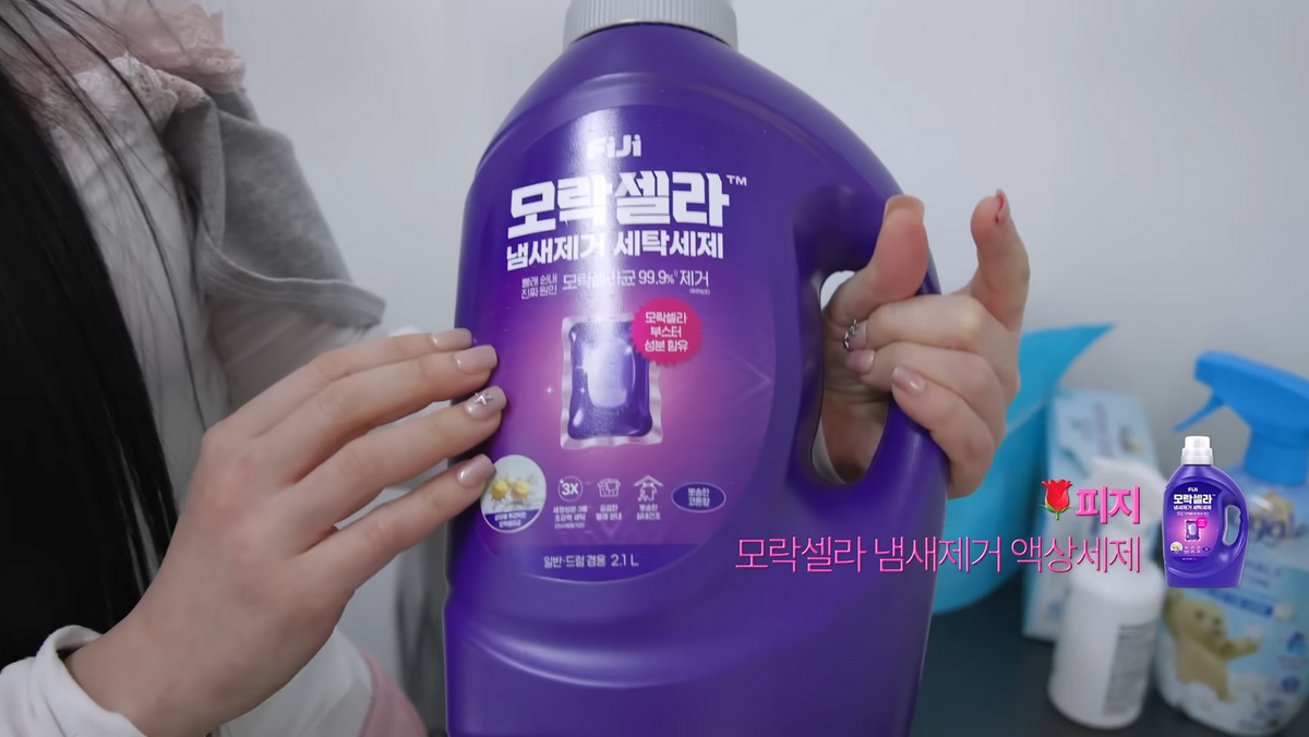 스타일리스트 앨리스펑크도 빨래에 진심인 편. 그만큼 세제 선택에도 까다롭다. 제 아무리 향수를 뿌리고 해도, 빨래 후 옷에서 쿰쿰한 냄새 나는 걸 가장 싫어한다고. 현재 정착한 아이템은 피지 모락셀라 냄새제거 액상세제. 제품 설명만 봐도 냄새를 없애는 데 집중한 세제다. 빨래 쉰내, 아무리 빨아도 나는 생활 냄새 등에 제격이라고.