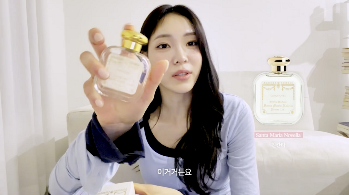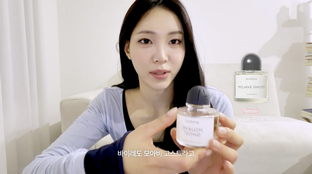 자칭 ‘향수 수집가’라는 현지는 영상에서 애정하는 향 네 가지를 공개했다. 가장 손이 자주 가는 제품은 바이레도의 모하비 고스트. 무화과를 베이스로 한 은은한 향에 여러 노트가 겹쳐져, 꾸안꾸부터 힘 준 룩까지 두루 어울리는 만능 향수라고 설명했다.