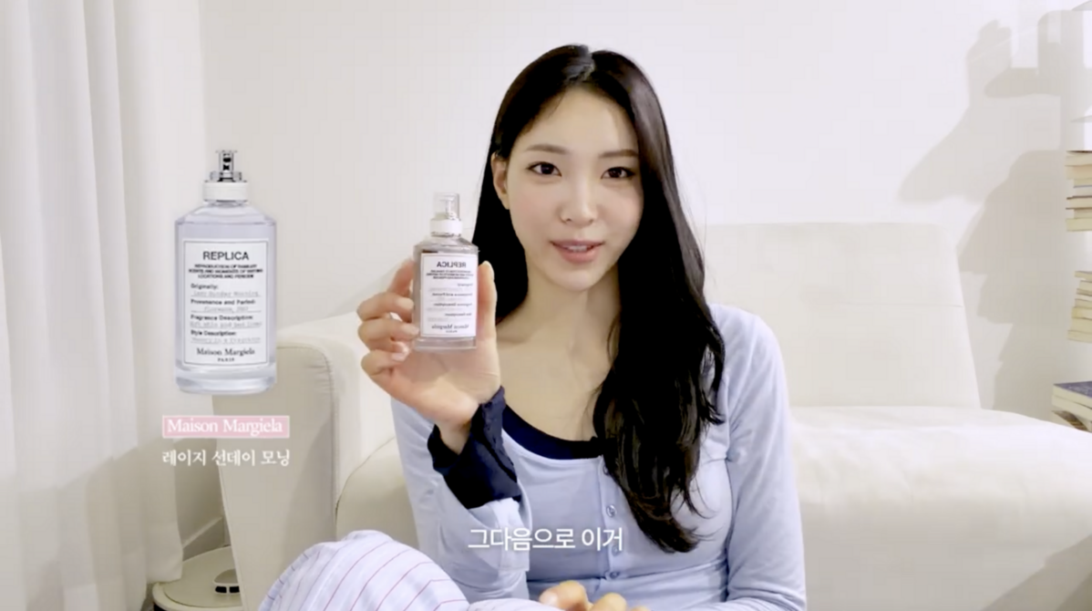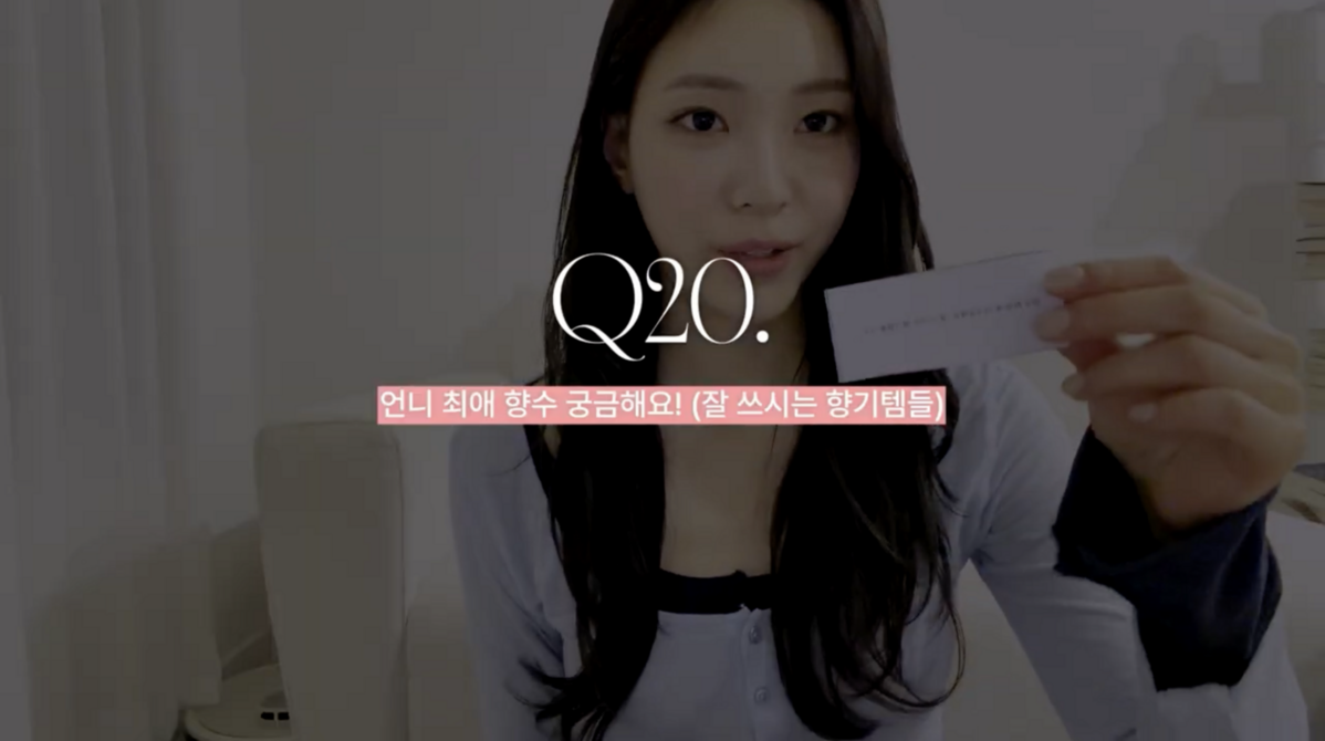 꾸미지 않은 날에는 메종 마르지엘라의 레이지 선데이 모닝을 선택한다. 갓 세탁한 린넨처럼 깨끗하고 포근한 향. <환승연애4> 촬영 당시 사용한 향수는 산타 마리아 노벨라의 친칸타라고 밝혔다. 상큼하지만 마냥 가볍지만은 않은 향이라며, 마이크를 채워주던 오디오 감독이 향수 정보를 물어볼 정도였다는 에피소드도 덧붙였다.