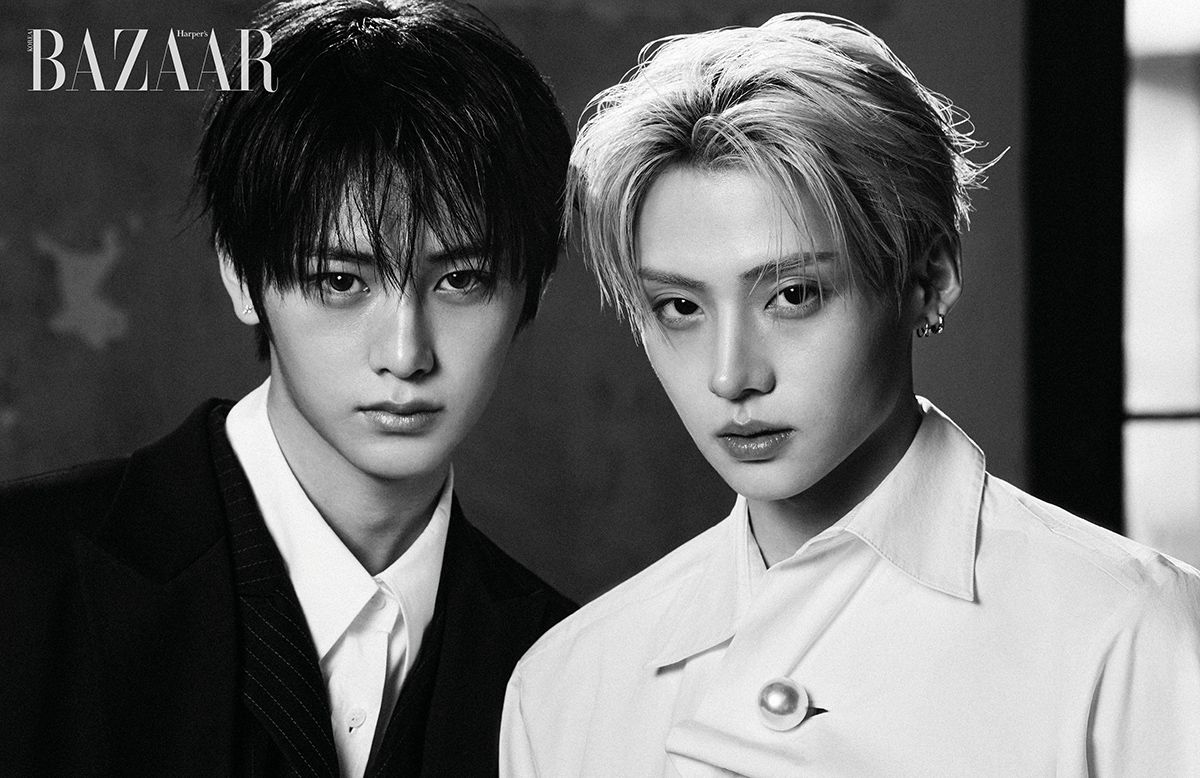 (왼쪽부터) 리오가 착용한 재킷, 셔츠, 팬츠, 목걸이, 준서가 착용한 재킷, 셔츠, 팬츠, 이어커프는 모두 Re Rhee.