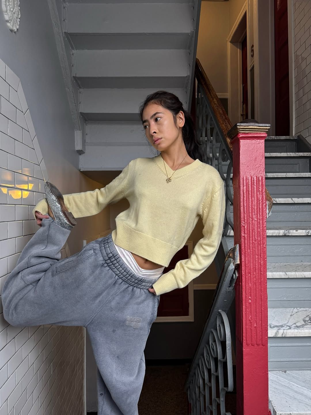 - 신발 하나로 추리닝 바지의 무드가 완전히 달라진다.