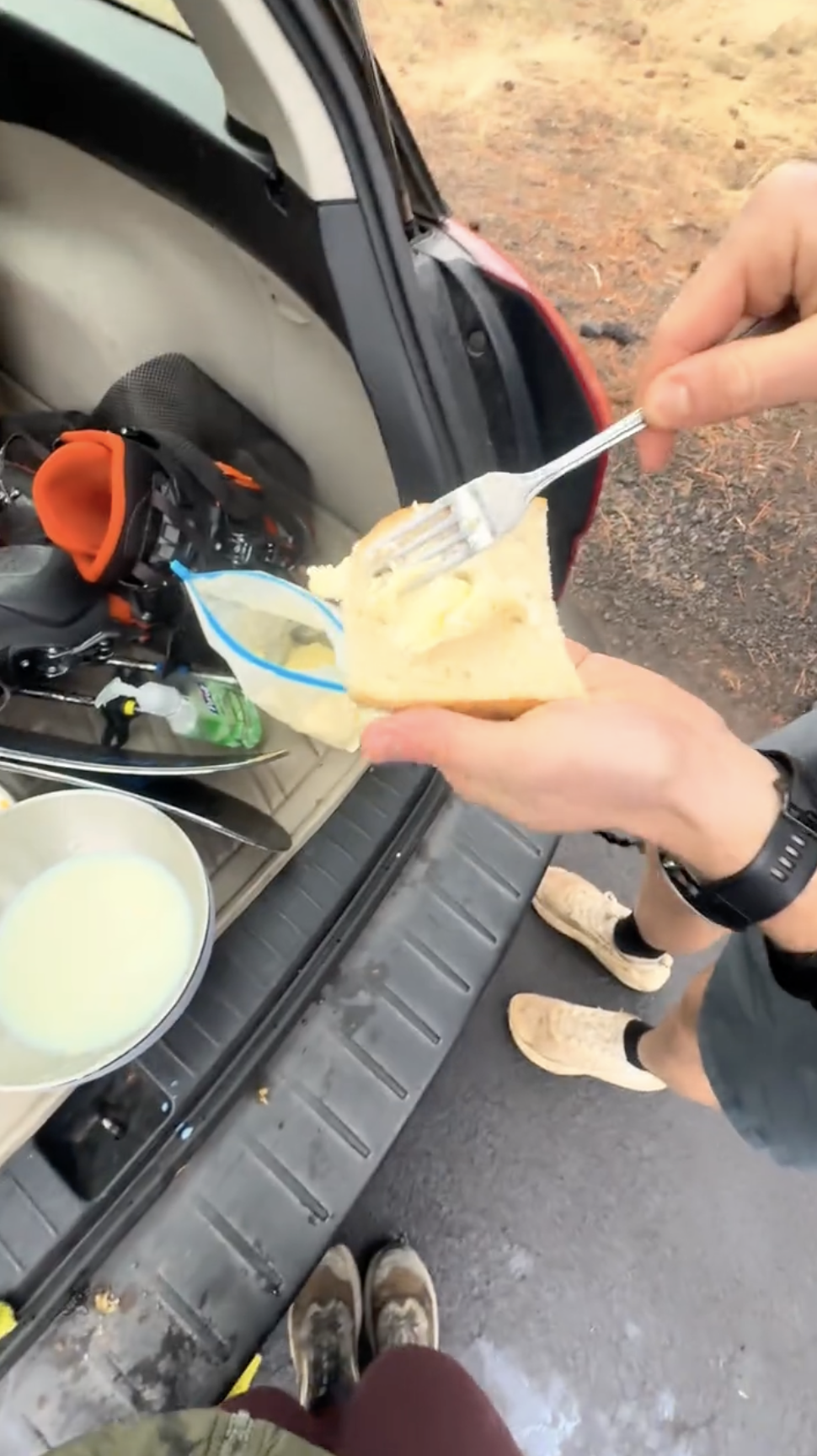 이제 뛸 차례. 러닝 베스트나 가방에 밀봉한 생크림을 넣고 약 7~10km를 달리면 된다. 달리는 동안 반복되는 흔들림과 충격으로 생크림 속 지방 입자들이 서로 뭉치며 고체화되고, 자연스럽게 버터가 완성된다. 러닝을 마친 뒤, 지퍼백 안에 버터밀크와 분리된 고체 버터가 생겼다면 ‘버터런’ 챌린지 성공. 출발지에서 7~10km 떨어진 베이커리를 목적지로 삼는 것도 추천한다. 러닝 후, 갓 만든 버터와 따끈한 빵을 함께 즐길 수 있다.