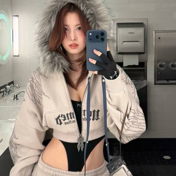 평범한 사복템도 슬기의 감각을 거치면 이토록 근사한 데일리 룩이 완성된다. 심플한 블랙 니트 가디건에 사선 디자인이 돋보이는 레이스 슬립 원피스를 입고 카키색 면바지를 더했다. 한쪽 어깨만 드러낸 가디건과 카키색 팬츠의 조합이 레이스 슬립 원피스를 더욱 특별해 보이도록 만들어줬다.