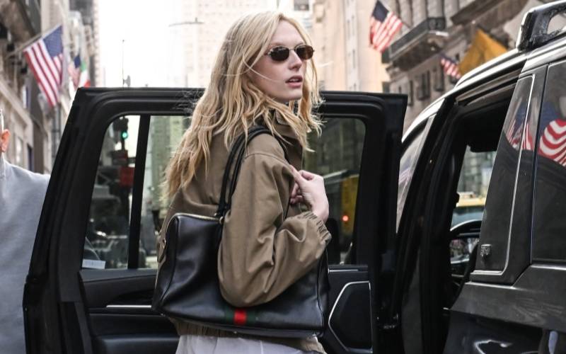 안야 힌드마치는 넉넉한 수납이 가능한 토트 구조에 강한 대비의 레오파드 패턴을 더한 디자인을 선보였다. 직선적인 실루엣과 단단한 형태가 패턴의 과감함을 안정적으로 정리하는 것이 포인트. 사이드와 핸들에 더해진 레더 디테일이 내구성과 완성도를 높였다. 블랙 셋업이나 간결한 오피스 룩에 매치했을 때 실용성과 포인트를 동시에 만족시킬 수 있는 아이템.