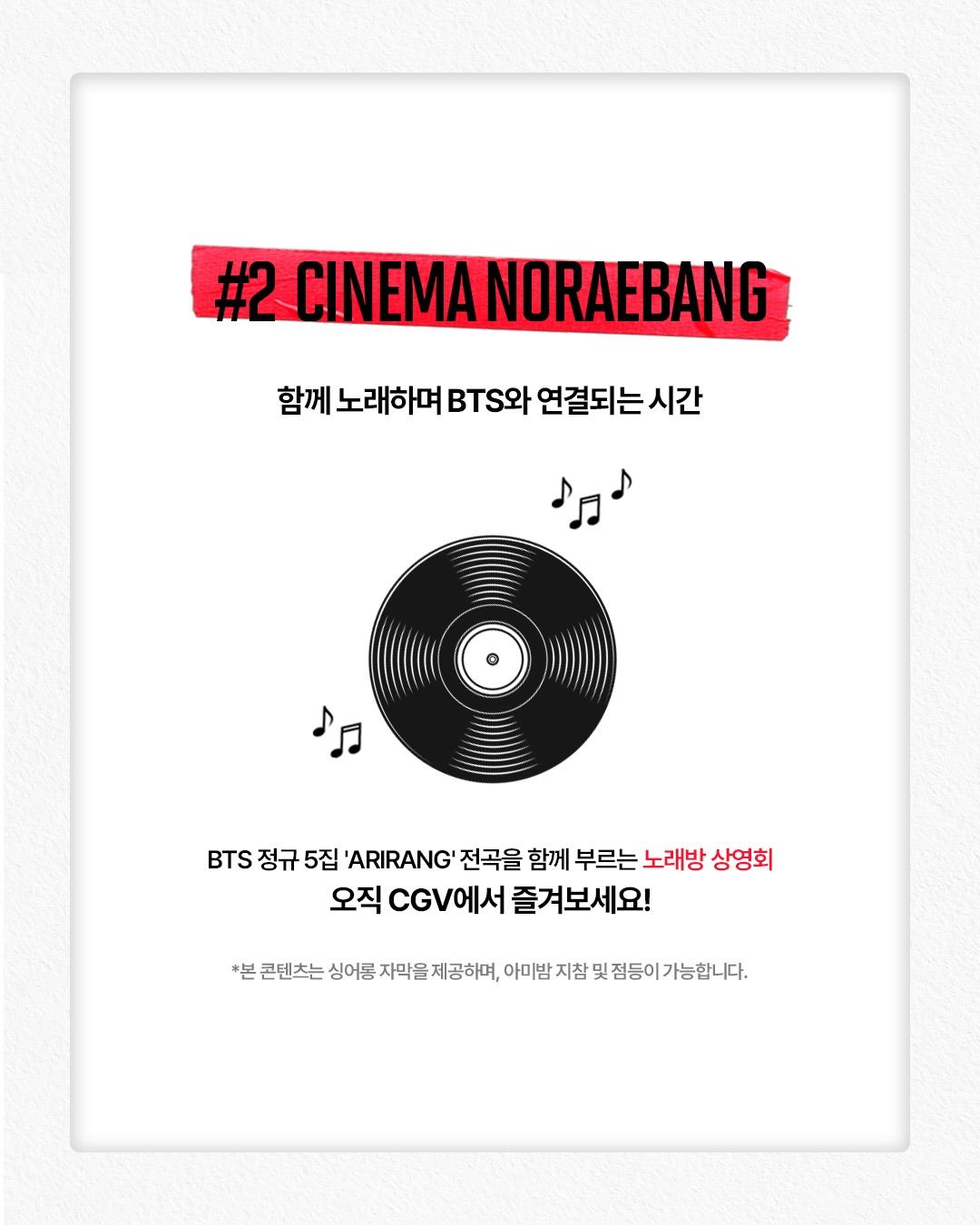 3. CGV <BTS THE CITY ARIRANG SEOUL : EXPERIENCE IN CINMEAS>