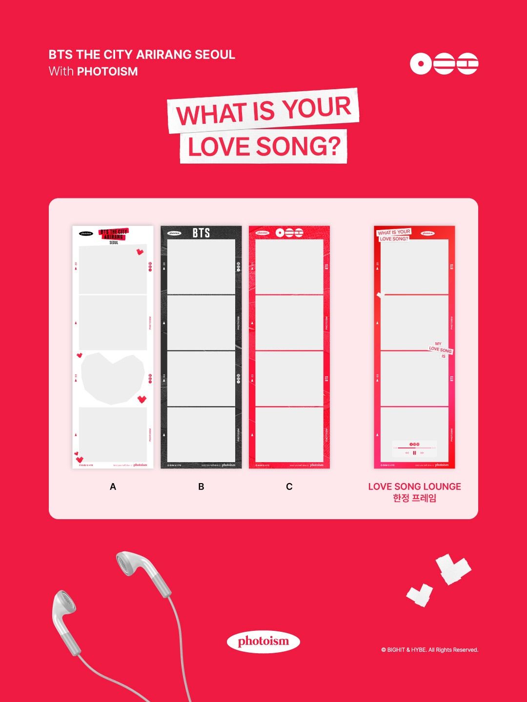 BTS 컴백을 맞아 여의도 한강공원에 조성된 음악 감상 공간 ‘러브 송 라운지’. 다양한 체험 프로그램과 아티스트 공연까지 함께 즐길 수 있다. 포토이즘은 이번 이벤트를 위해 레드와 하트 포인트를 더한 특별 프레임을 선보였다. 현장의 설렘과 즐거운 추억을 기념사진으로 남겨 보는 것은 어떨까.