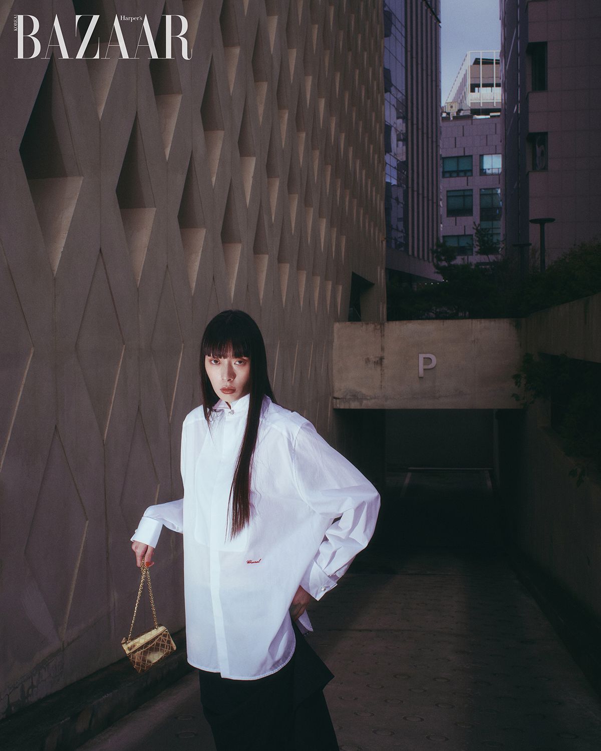 셔츠, 스커트, 스몰 이브닝 백은 모두 Chanel.