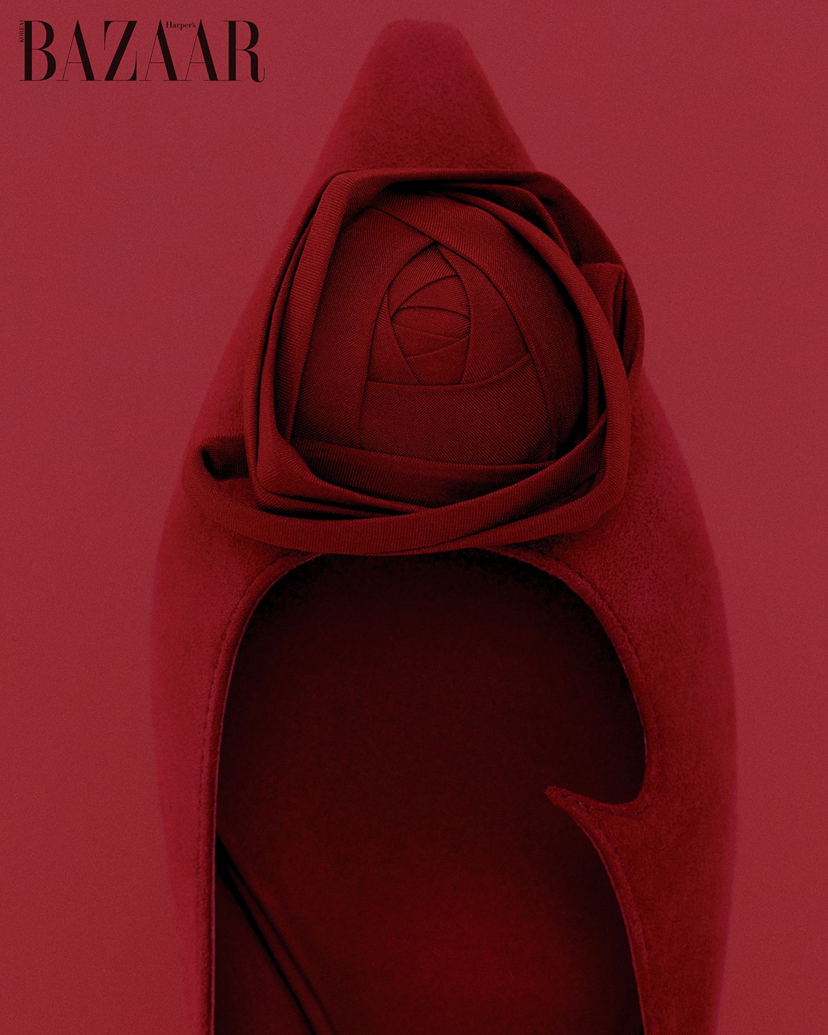 플라워 아플리케가 돋보이는 발레리나 플랫은 Roger Vivier.