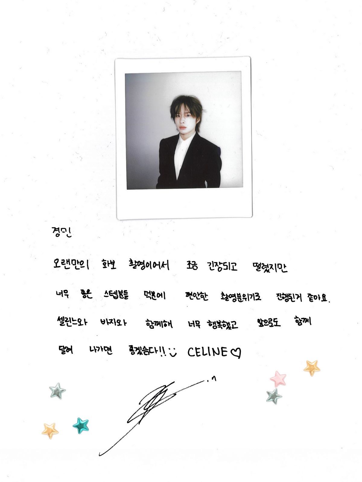 오랜만의 화보 촬영이어서 조금 긴장되고 떨렸지만, 너무 좋은 스텝분들 덕분에 편안한 촬영 분위기로 진행된거 좋아요. 셀린느와 바자와 함께해 너무 행복했고 앞으로도 함께 달려 나가면 좋겠슴다 !! :) CELINE ♥ -경민-