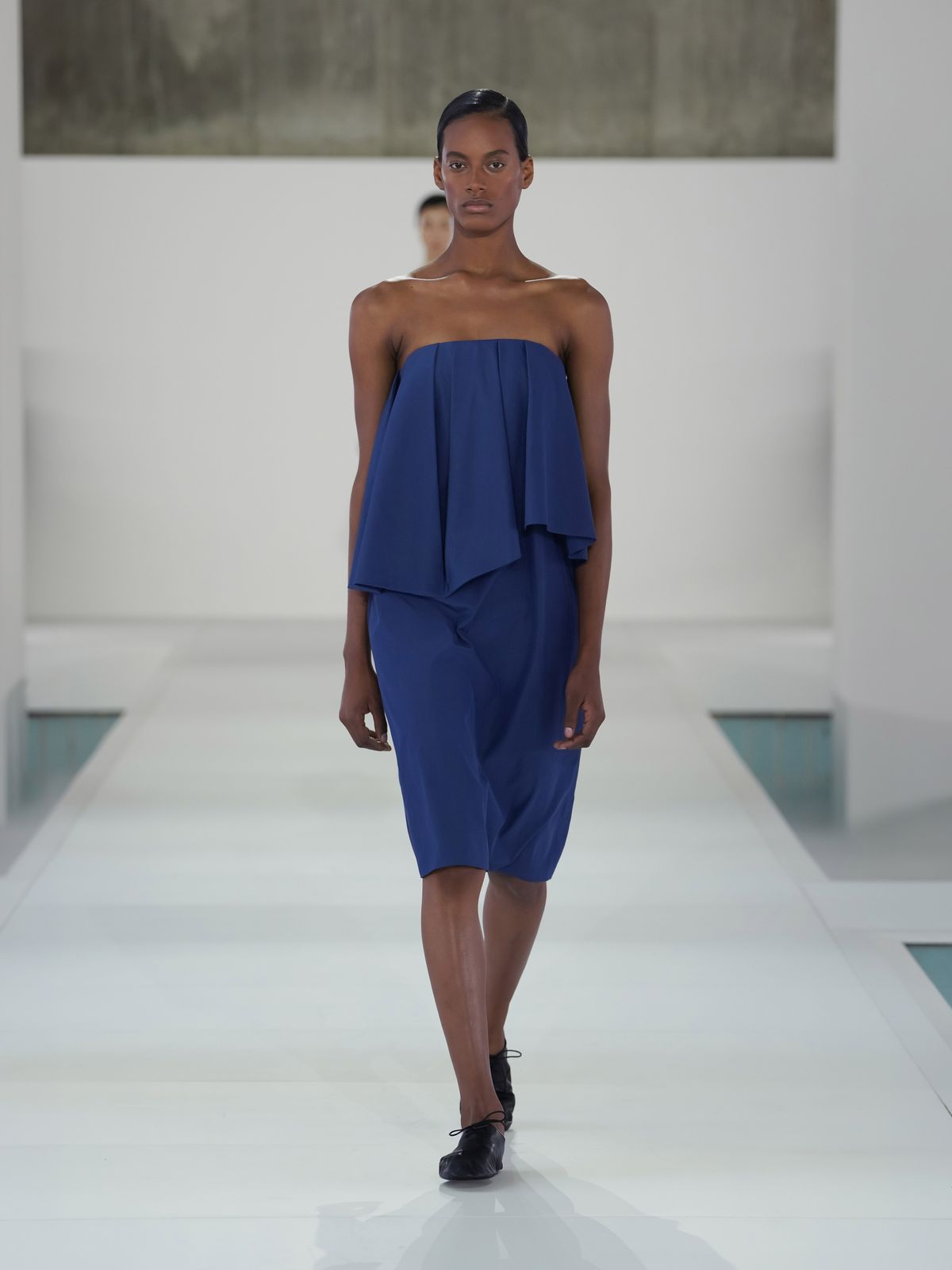 이번 시즌 컬렉션은 80년대와 90년대의 무드를 바탕으로, 코스 특유의 미니멀리즘을 보다 입체적이고 유연한 방식으로 풀어냈다. 신체를 따라 자연스럽게 흐르는 드레이프와 조형적인 실루엣, 그리고 힘 있게 떨어지는 테일러링은 이번 쇼 전반을 관통하는 핵심 요소였다. 간결한 드레스와 코디네이션 룩은 90년대 미니멀리즘을 연상시키는 명확한 선을 드러냈고, 강조된 어깨 라인은 80년대 파워 드레싱에 대한 은은한 오마주로 읽혔다. 코스의 시그니처 테일러링은 유연한 소재와 절제된 드레이핑을 통해 보다 부드럽고 현대적인 형태로 재해석됐으며, 릴렉스드한 실루엣의 셋업과 간절기 아우터는 일상복에 대한 새로운 균형을 제안했다.