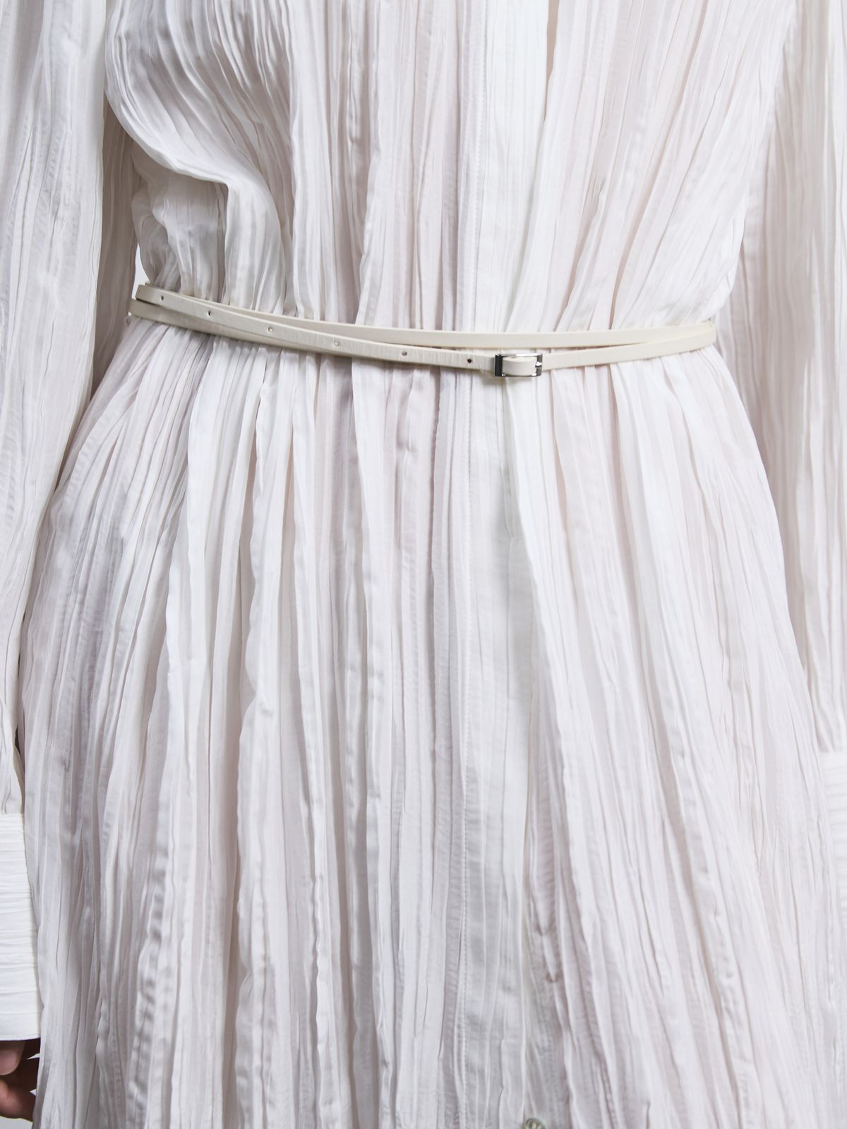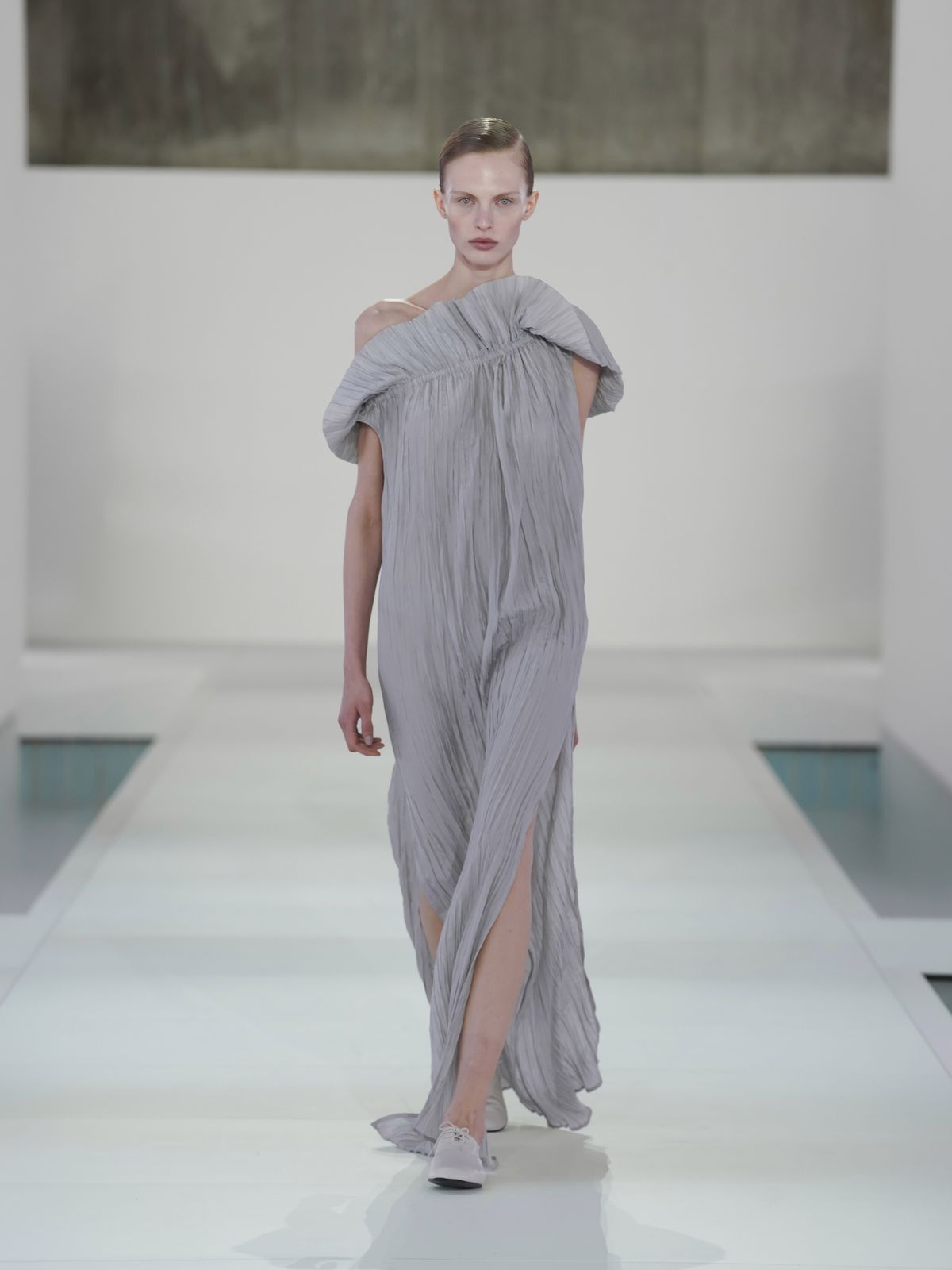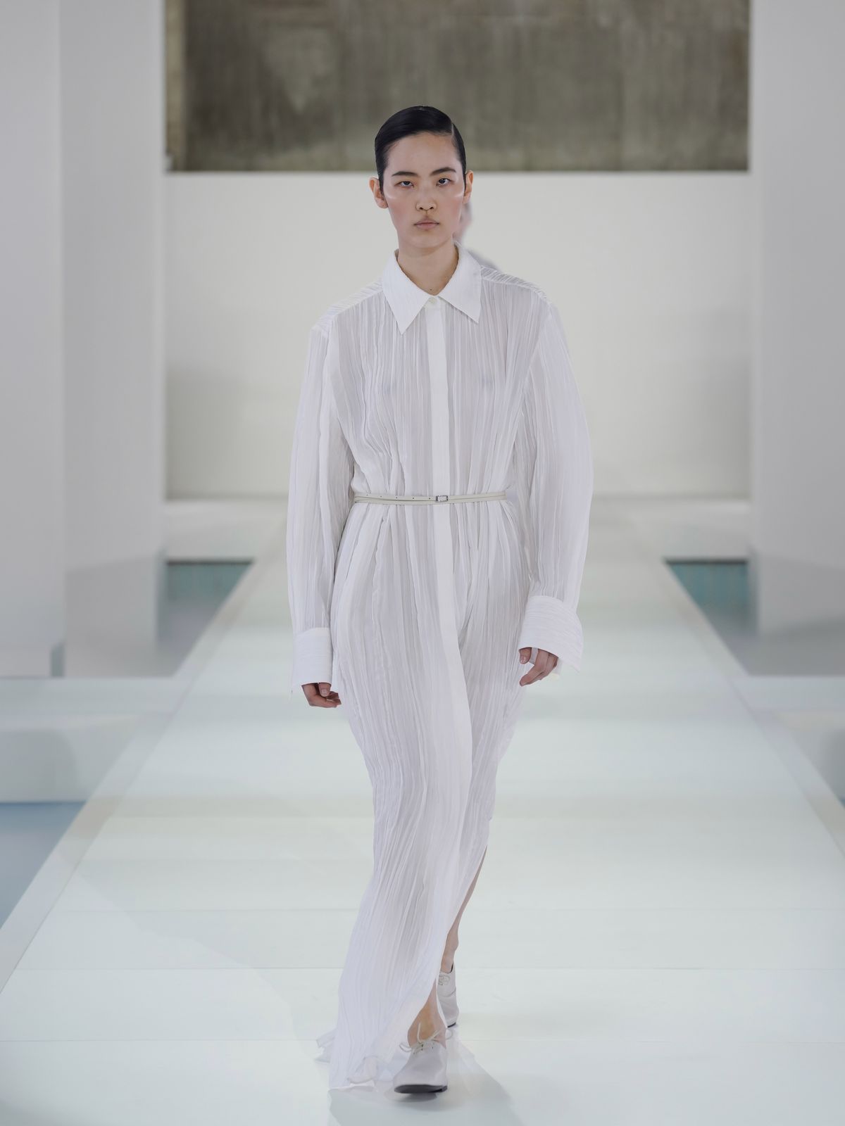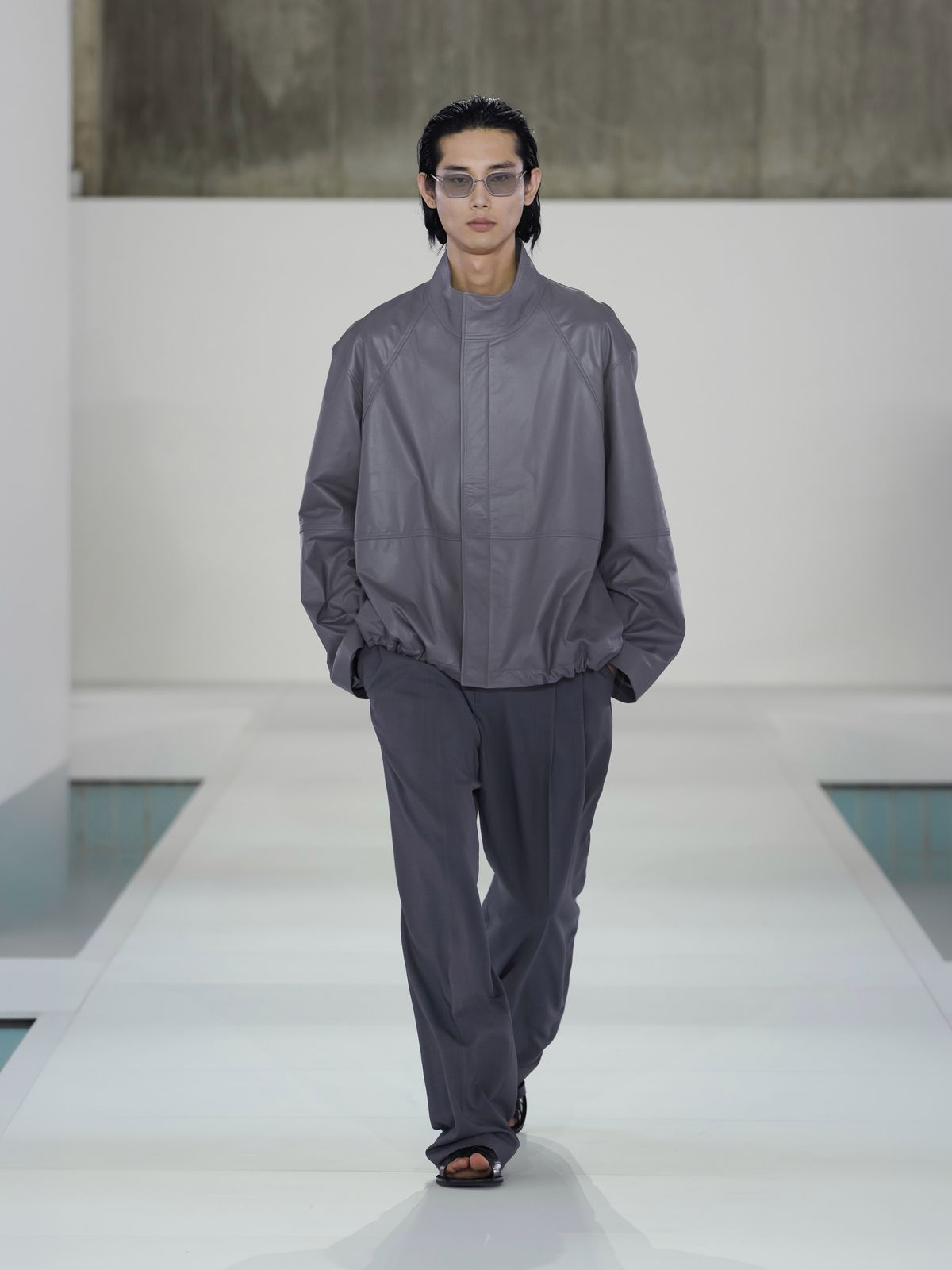 이번 시즌은 무엇보다도 소재에 대한 탐구가 인상적이었다. 미묘한 광택을 띠는 가죽과 기능성 패브릭은 의도적으로 연출된 드레이프와 조형적인 실루엣을 강조했고, 종이 질감을 연상시키는 표면은 구겨진 듯한 촉감을 통해 시각적 긴장감을 만들었다. 린넨 멜란지는 룩에 깊이 있는 텍스처를 더했고, 투명감이 감도는 소재들은 움직이는 신체의 윤곽을 은은하게 드러냈다. 가볍고 통기성 있는 패브릭은 몸을 따라 자연스럽게 흐르며, 컬렉션 전반에 절제된 우아함을 더했다.