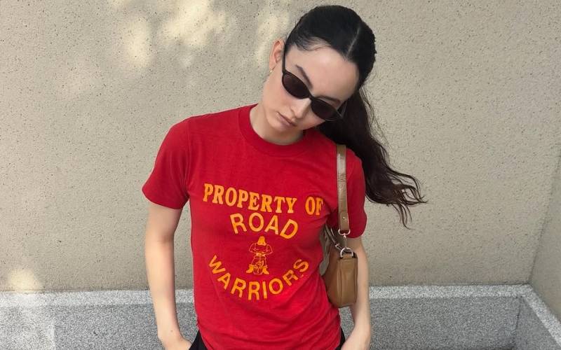 터너 스미스는 버버리의 앰배서더이자 쇼의 가장 앞줄을 지키는 단골이다. 이 사실을 기준으로 보면 이날의 옷차림은 수수한 편이었다. 와이드 레그 진에 화이트 컬러의 ‘베이비걸(Babygirl)’ 티셔츠를 입고 있었다. A24가 제작한 니콜 키드먼 주연의 영화 <베이비걸>의 머천다이즈 티셔츠였다. 목걸이에 달린 작은 실버 참은 그가 제러드 레토, 그레타 리와 함께 출연한 디즈니의 초대형 SF 영화 <트론: 아레스>의 ‘마스터 컨트롤 디스크’를 미니어처로 만든 것이었다. 이 디스크는 사용자의 신원 등을 저장하고 있는 영화 속 무기다. <트론: 아레스>의 감독 요아킴 뢰닝은 그에게 이 목걸이를 선물했다. 터너 스미스는 턱까지 오는 길이의 브레이드 헤어를 하고, 테 없는 캐츠아이 형태의 안경을 쓰고 있었다. 얼핏 가볍게 변장한 여신처럼 보였다.