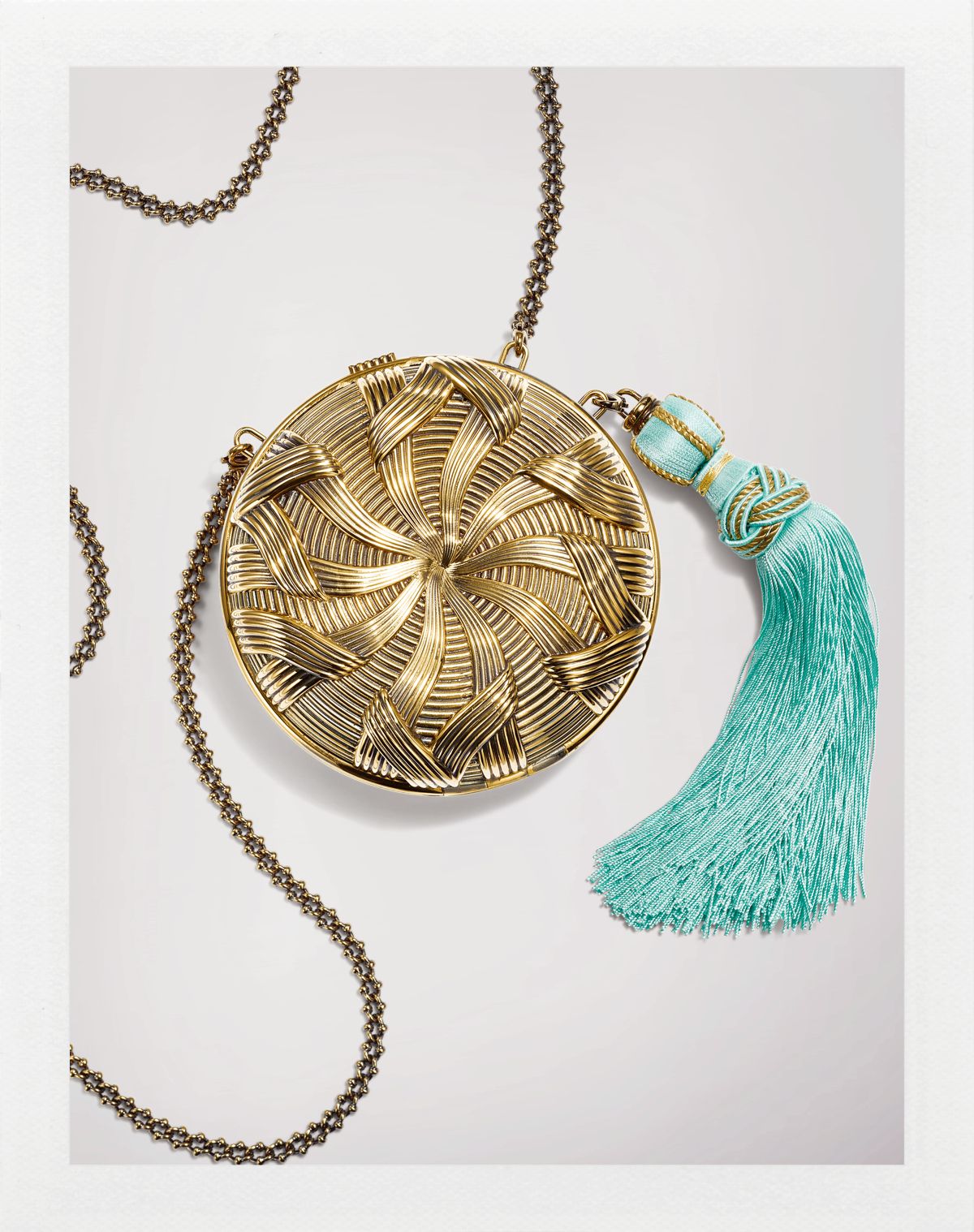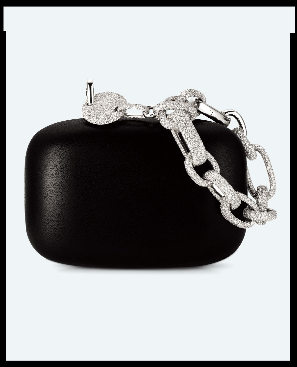 체인 핸들이 돋보이는 ‘모닐리’ 클러치 백은 Pomellato×Gucci.