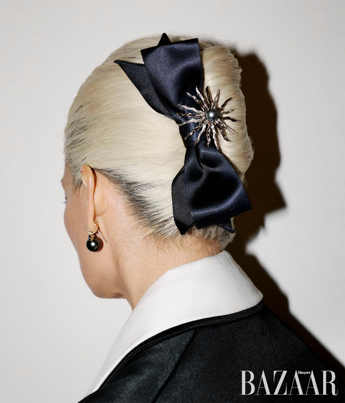 다코타 존슨과 스칼렛 요한슨의 스타일리스트 케이트 영은 오랫동안 프렌치 트위스트를 즐겨 해왔다. 그녀는 최근 두 번의 공식 행사에서 이 스타일을 선보였다. “프렌치 트위스트는 번과 비슷한 장점이 있지만 훨씬 더 세련되게 느껴져요. 우아한 올드 머니 분위기가 드러나죠.” 케이트 영은 실핀으로 형태를 잡아 프렌치 트위스트를 만든 뒤 브로치나 귀고리, 혹은 세로로 리본 장식을 꽂아 마무리한다. 이는 뉴욕에서 열린 마티유 블라지의 2026 샤넬 메티에 다르 쇼에서 영감을 받은 것이다. 그녀에게 프렌치 트위스트는 특별한 날에만 하는 헤어가 아니다. “낮에는 실핀 대신 큰 빗 하나로 느슨하게 틀어 올린 스타일을 자주 해요.”