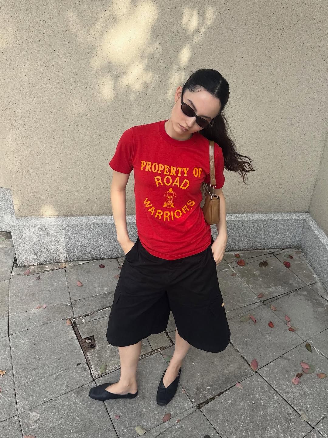 레드 레터링 티셔츠도 빈티지한 맛을 제대로 살리는 조합이다. 여기에 미니멀한 쇼츠와 슈즈를 더해보자. 힙함 그 자체다. 빈티지 티셔츠를 고를 때 레드를 꼭 잘 보자. 세상에 단 하나도 같은 컬러의 레드 톤은 없다. 레드의 매력은 계속 세탁할수록 배가된다. 빈티지한 맛이 살아난다. 바랜 레드는 새 레드보다 부드럽고, 오래 입을수록 나만의 컬러가 된다. 빈티지 레드 티셔츠 하나쯤은 가지고 있어야 하는 이유다.