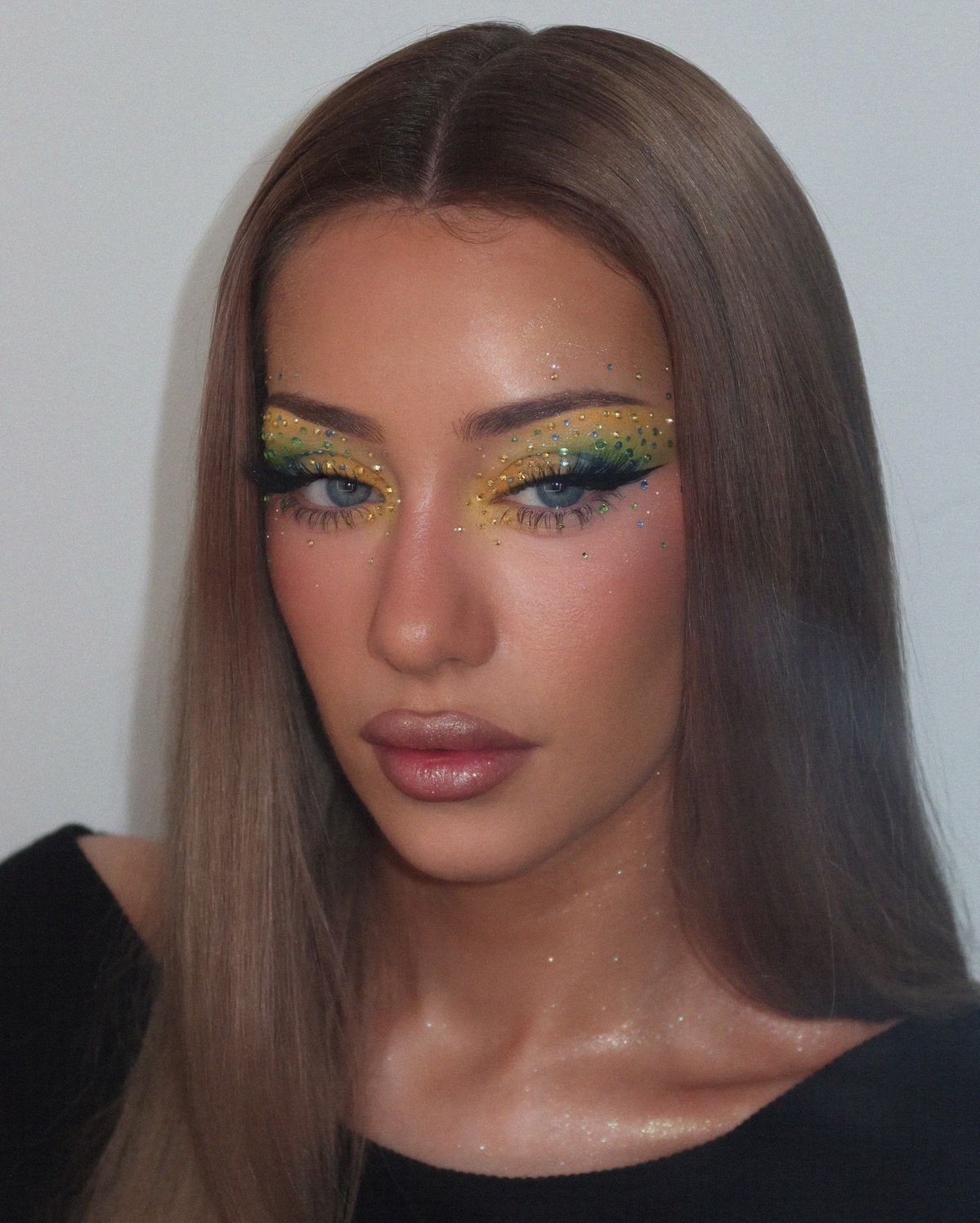 소피아 시노트의 대표 작업은 스웨덴 출신 싱어송라이터 자라 라슨 메이크업. 글리터와 젬을 중심으로 한 다채로운 룩을 선보이며, 자라 라슨만의 시그니처 비주얼을 완성했다. 평소보다 과감한 시도를 즐기고 싶은 페스티벌 메이크업으로 참고하기 좋다.