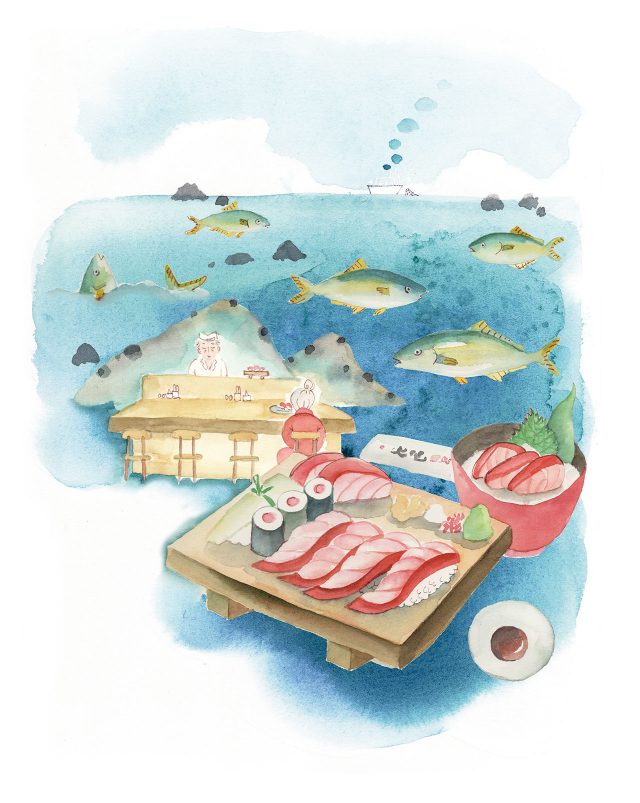 붉은 외출복을 아주 잘 차려입은 할머니 한 분이 혼자 앉아 초밥을 먹고 있었다. 언제 돌아가셔도 ‘호상’ 소리를 들을 것 같은 할아버지가 이타마에(板前)였다. 이타마에란, 숙련된 요리사란 뜻이니 그에게 이런 말을 붙이는 건 외람된 일일지도 모르겠다. 숙련이라니, 그는 적어도 60년은 초밥을 쥐었다고 했다. 10대 후반에 시작한 일이고, 80이 넘었다고 하니. 할머니는 홀에서 시중을 들고, 그는 초밥을 쥐었다. 그래도, 노인들이 연금이라도 나오는 날이면 이렇게 몇 명이라도 들를 테지. 나는 ‘망해가는 것이 하나도 이상하지 않은’ 이 최후의 초밥집에서 그런 생각을 했다. 이 흰머리의 이타마에 씨에게 우리는 주문할 초밥을 골라야 했으나, 그다지 선택의 여지가 없었다. 간이 진열 냉장고에는 오직 두어 가지 생선의 살만 보였으니까. 언제 손님이 올지 모를, 어쩌면 아무도 안 올 수 있는 동네의 초밥집에서 늘 싱싱한 생선 열두어 가지를 마련해두는 건 말이 안 되니까. 그의 냉장고에는 오징어와 방어만 보였다. 그렇다. 방어. 부리, 라고 이타마에 씨가 말했다. 부리는 방어의 일본어 이름이다. 그는 새벽장에서 오직 방어 한 마리, 아니 반 마리(가능하다면)를 사 왔으리라. 초밥 생선을 숙성해서 먹는 이들 관습에 따라 한 마리를 사면 손님이 적더라도 삼사일 이상은 너끈히 두고 팔 수 있다고 생각했을지도 모르겠다. 그에게 ‘초밥 세트’를 주문했다. 밥알 덩이(샤리)를 크게 크게 잡아서 배가 부르도록 마음을 썼다. 그는 아주 천천히, 그러나 물 흐르듯이 유연한 솜씨로 초밥을 쥐었다. 그의 동작은 느려 보였으나 금세 초밥이 만들어졌다. 군더더기 없는 동작으로, 느릿하게, 힘 쓸 곳을 최소화하는 노장의 비법이려나. 초밥을 올려내는 도마가 꽉 차도록 커다란 방어 살점을 얹은 초밥이 가득해졌다. 방어는 보통 5킬로그램, 크게는 10킬로그램이 넘는 걸 대우해준다. 그가 얹어낸 방어 살점으로 가늠해보니, 대방어라고 부를 만한 큰 놈이었다. 방어와 참치는 클수록 대우받는다. 배 아래쪽의 기름기 있는 살점이 인기가 있기 때문이다. 방어 뱃살은 몰라도 참치 대뱃살은 들어봤으리라. 방어도 참치처럼 대양을 회유하면서 추운 겨울을 대비하여 배에 기름을 저장한다. 그것이 우리 입에 들어오면 살살 녹는 지방층을 가진 뱃살 횟감이 되는 것이다. 그는 대뱃살, 그 아래쪽의 중뱃살, 등살 등을 고루 섞어서 초밥을 만들어주었다. 한 몸에서 났으나 그 맛과 감촉이 제각기인 초밥들로 행복해졌다. 아아, 그 집이 아직 있으려나. 노인이 초밥 쥘 힘이 없어지고, 문을 닫았을 것 같다. 아니, 그가 아직 지구상에 살아 있을 것 같지 않다. 세월이 흘렀다.