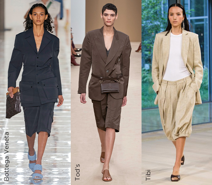 팬츠수트의 유행은 계속된다. 한 가지 달라진 건 팬츠의 길이. 버뮤다팬츠가 수트의 새 파트너 자리를 꿰찼다. 이번 시즌 강력한 트렌드로 등극한 버뮤다는 5부 길이에 딱 떨어지는 실루엣으로 담백한 멋을 자아낸다. 토즈, 티비, 지방시처럼 재킷은 조금 큰 사이즈를 입고, 나른한 뉘앙스의 슬라이더를 더하면 쿨한 연출이 가능하다. 하지만 어정쩡한 길이인 만큼 체형에 따른 현명한 솔루션이 필요하다. 키가 작거나 각선미에 자신이 없다면 무조건 힐을 신는 게 현명하다. 뮬을 매치한 보테가 베네타의 스타일링 팁을 놓치지 말도록.