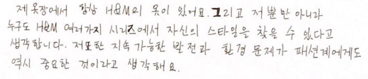 H&M 모델이 된 이유는 무엇이라고 생각하시나요?