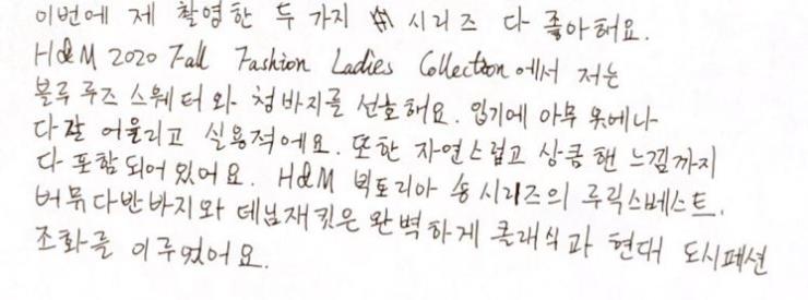 오직 바자에서만 만날 수 있는 빅토리아 송의 손글씨 인터뷰