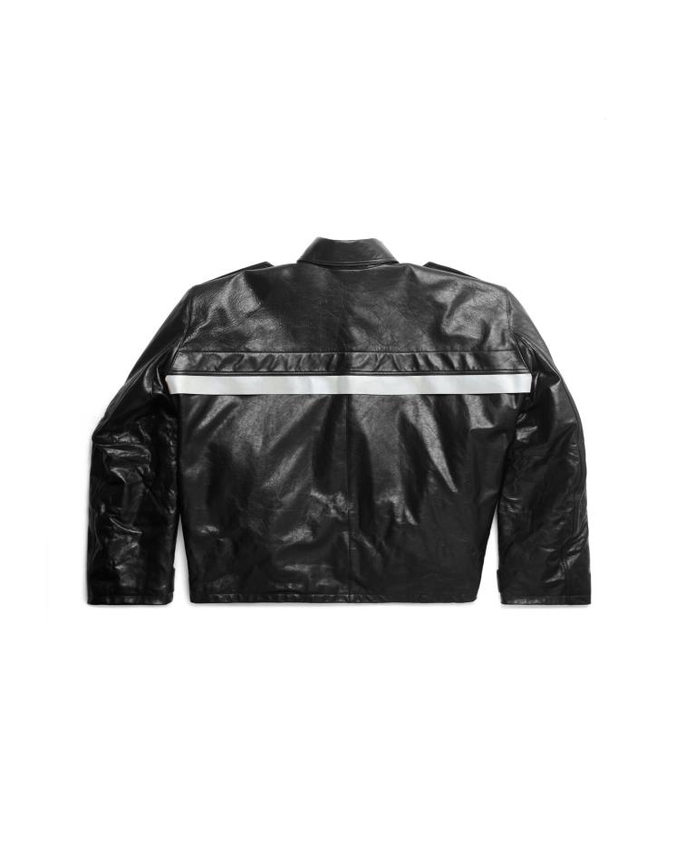 트렌디한 핏의 라이더 재킷을 찾는다면? 발렌시아가 2023 여름 컬렉션에서 선보인 재킷을 눈여겨보자. 부드러운 매트 카우스킨 소재에 오버사이즈 핏으로 남녀 구분 없이 입을 수 있는 게 장점. 앞면과 뒷면에 반사 스트라이프가 있고, 소매에 ‘Balenciaga Paris’ 패치로 발렌시아만의 힙한 무드가 더욱 돋보인다.