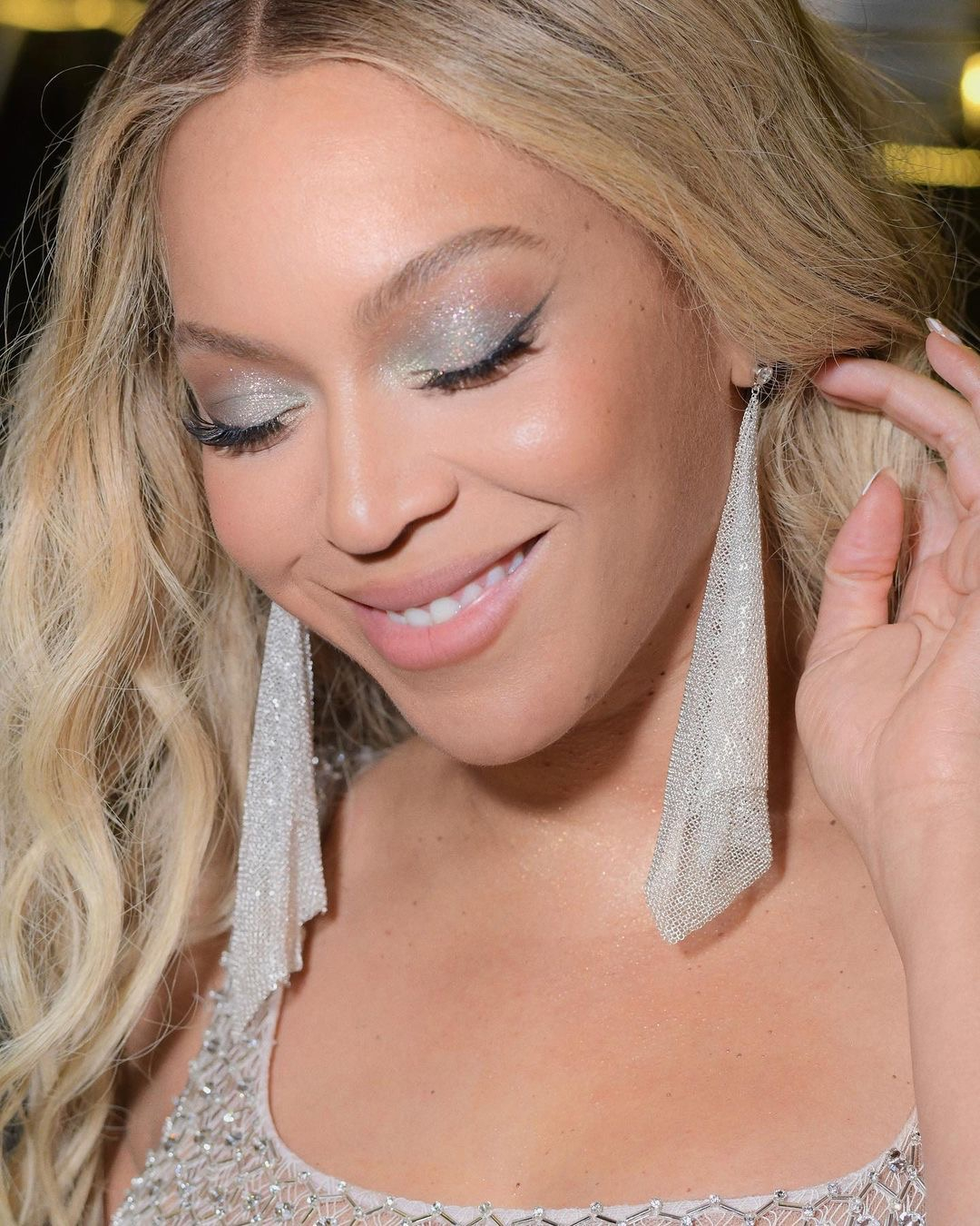 펜디의 2021 S/S 쿠튀르에서 영감을 얻은 커스텀 드레스와 티파니앤코의 메시 스카프 이어링으로 화려한 룩을 완성한 비욘세. 벌집 모양에 크리스털 자수가 놓여진 레이스 드레스는 눈을 뗄 수 없을 정도로 강렬하다. 깊은 슬릿이 비욘세의 섹시한 보디라인을 더욱 극대화해주기도.