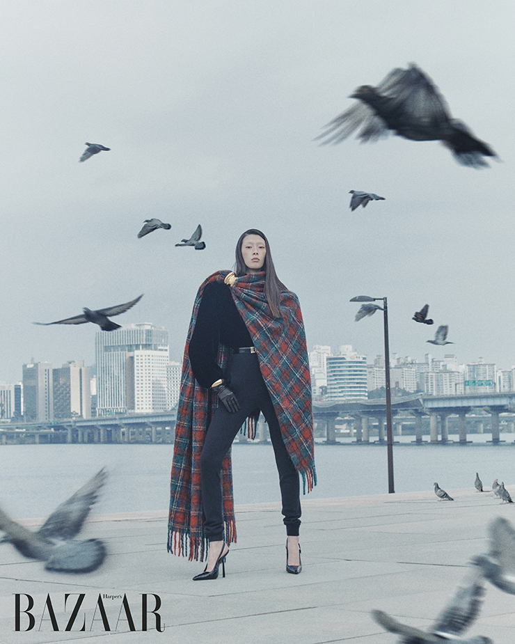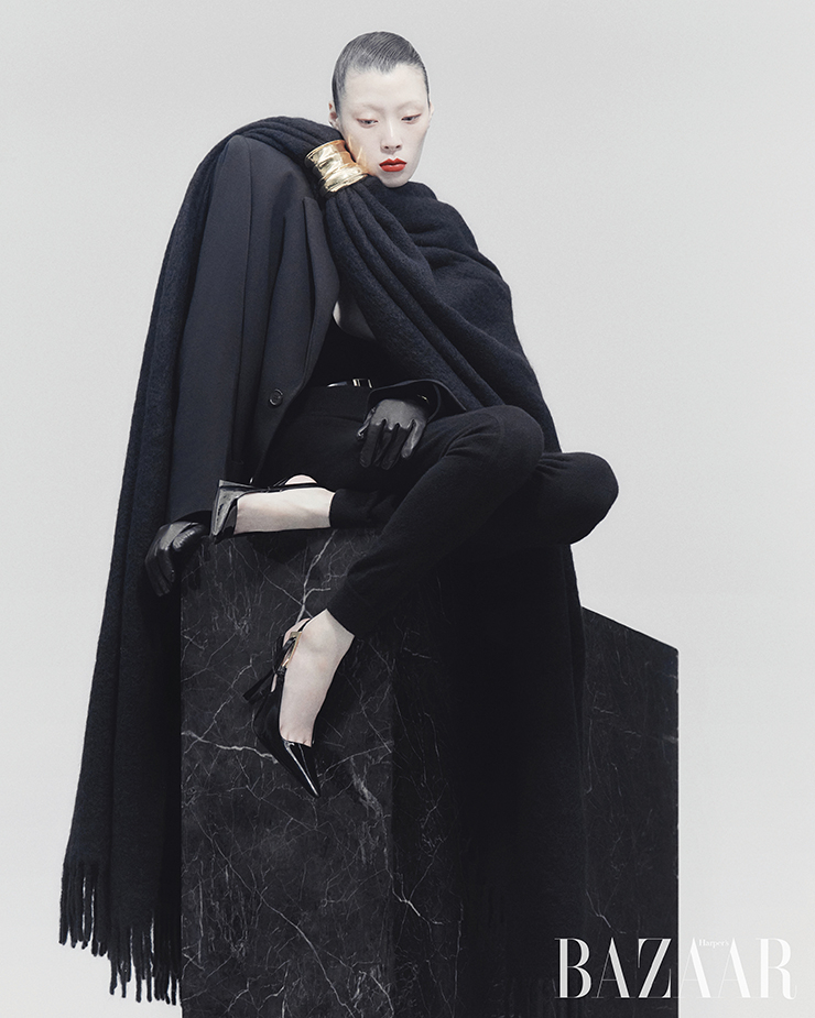 대담한 시선과 몸짓, 그 속에 깃든 생로랑의 우아한 오라(Aura).