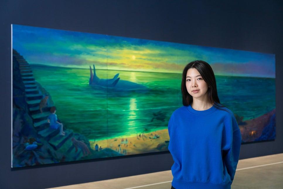 서울대학교 및 대학원 서양화과를 졸업한 작가는 영국에서 석사 과정 수료 후 현재 런던에서 거주하며 작업 활동 중이다. 작가는 현실과 비현실의 경계와 간극을 포착하여 작품을 통해 표현하고자 하는데, 그 안에는 작가가 보고 들으며 느낀 모든 경험이 바탕이 되어 만든 무의식이 존재한다. 과거와 현재, 현실과 꿈이 공존하는 작가의 상상과 무의식 속에서 관객들은 일상적이지만 몽환적이고 현실이지만 마냥 현실 같지 않은 묘한 경계에 놓인 기분을 느낄 수 있다.