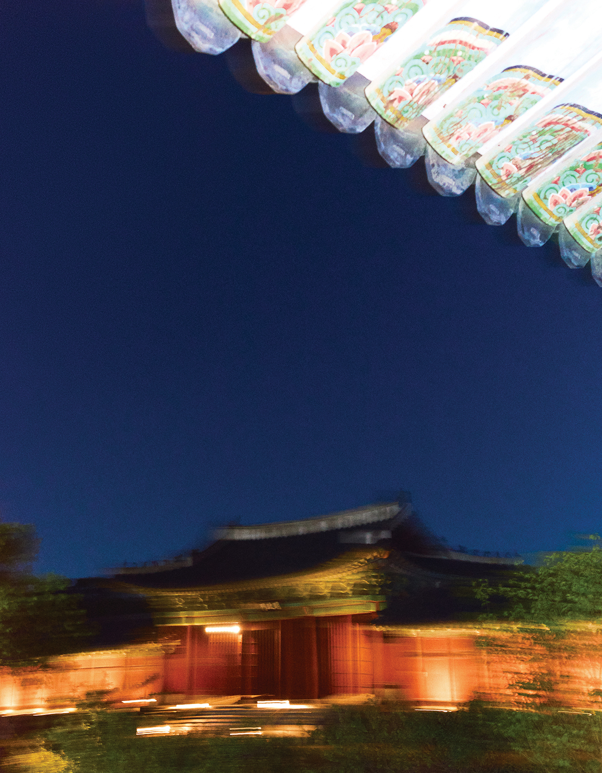 은은한 조명이 켜진 창경궁 홍화문.